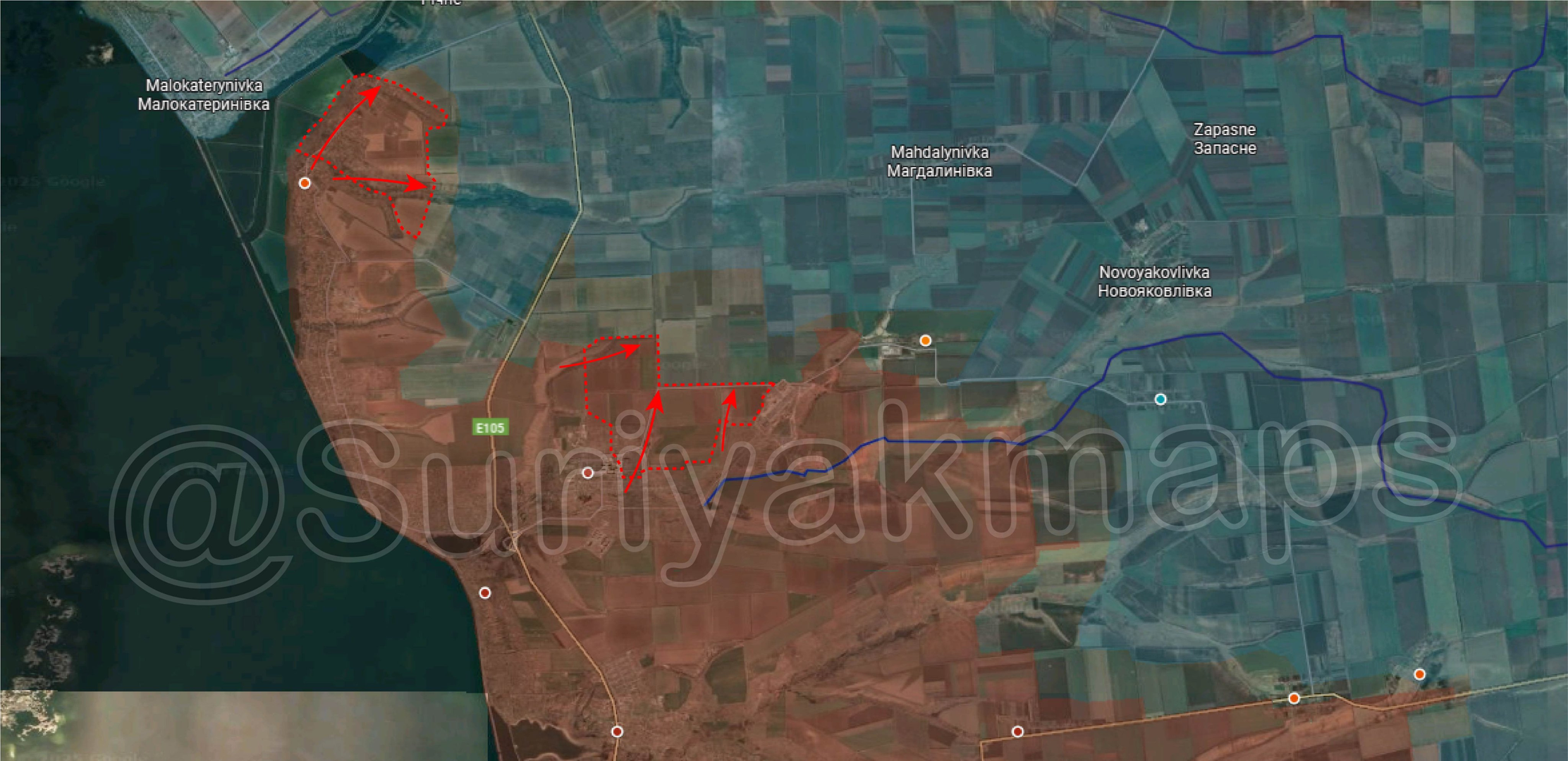 Tình hình mặt trận Vasylivka: Trong ba ngày qua, Quân đội Nga đã gần như chiếm được khu vực Prymorske, chuyển các cuộc giao tranh sang các khu nhà nghỉ phía bắc. Ngoài ra, lực lượng Nga đã hoàn toàn kiểm soát khu vực Stepnohirsk bằng việc chiếm giữ các chiến hào phía bắc, cũng gần nhà máy điện mặt trời.