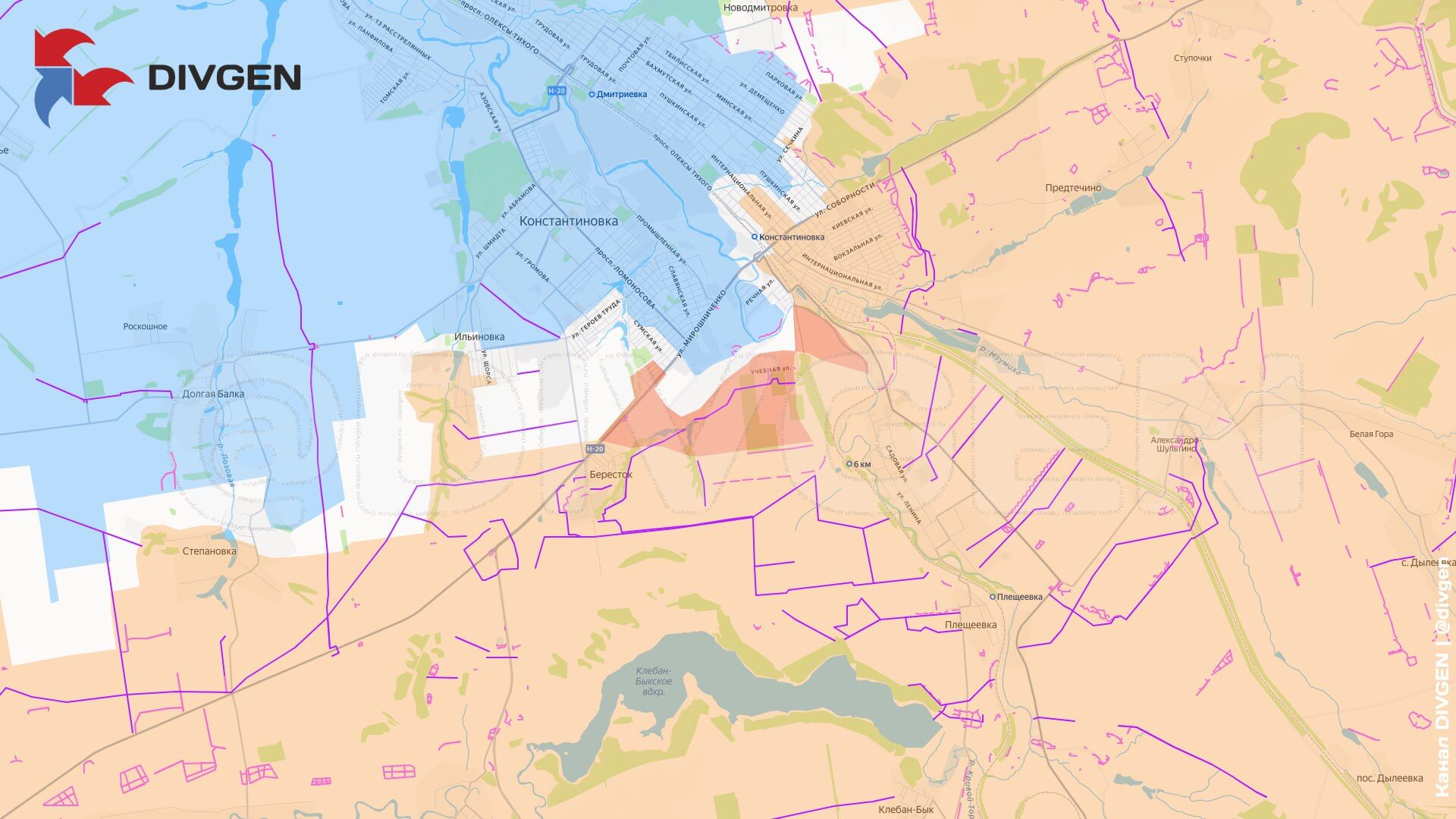 Cách đây một thời gian, một cuộc không kích đã đánh trúng con đập giữa Konstantinovka và Alekseyevo-Druzhkovka, dẫn đến lũ lụt ở khu vực xung quanh. Điều này sẽ tạm thời gây khó khăn cho việc tiếp tế của lực lượng Ukraine ở phía tây nam Konstantinovka. Một số tuyến đường đất và một đoạn vượt sông cũng không thể đi qua.