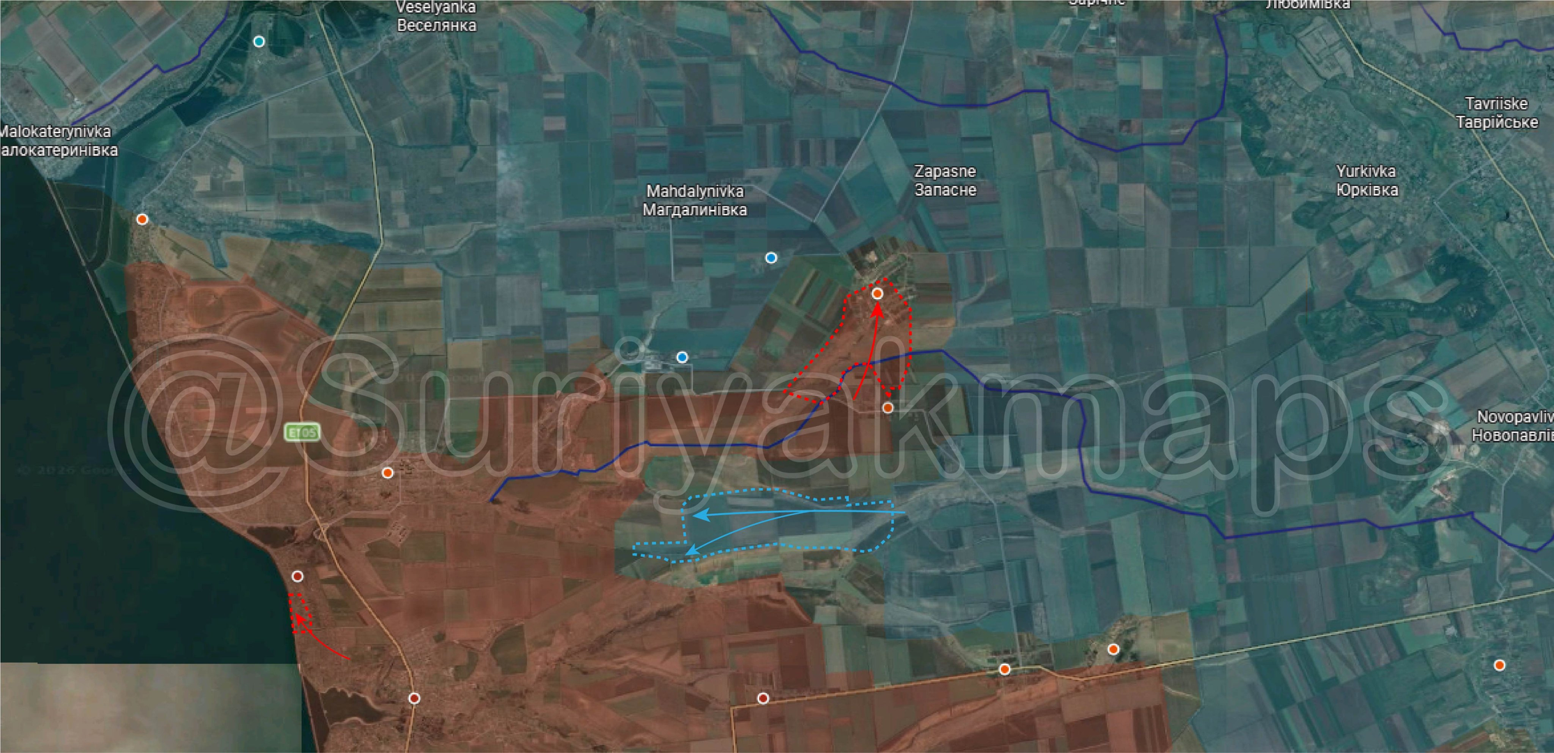 Tình hình trên mặt trận Vasylivka: Trong tuần qua, Quân đội Ukraina đã chiếm lại được một số vị trí ở phía tây nam Pavlivka và phía bắc Stepove. Mặt khác, Nga đã tiêu diệt được các nhóm xâm nhập của Ukraine ở Plavni và tiếp tục các hoạt động tấn công ở Novoykovlivka, cho phép họ chiếm lại một phần lớn địa phương này.