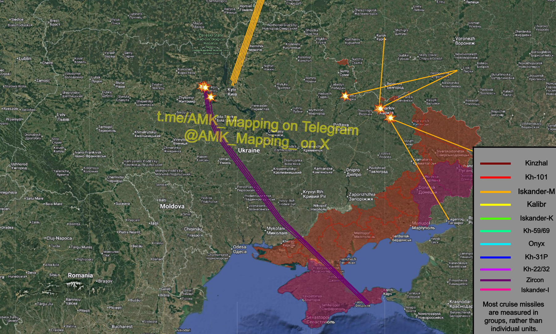 Cho đến nay, khoảng 10 tên lửa đạn đạo Iskander-M/S-400 và 4 tên lửa hành trình siêu thanh Zircon đã được phóng.