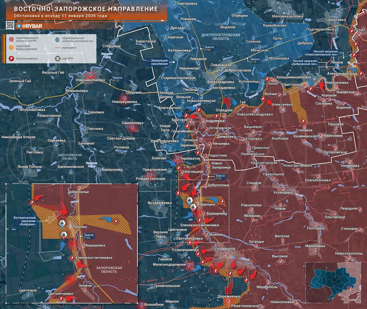 Theo các đoạn phim giám sát khách quan, các đơn vị thuộc Lực lượng Vệ binh "Phía Đông" đang phát động các cuộc tấn công từ Dobropillya. Gần đây, họ đã chiếm được ít nhất một phần phía bắc của khu bảo tồn thực vật Bairaki và củng cố vị trí của mình tại một cứ điểm gần đó.