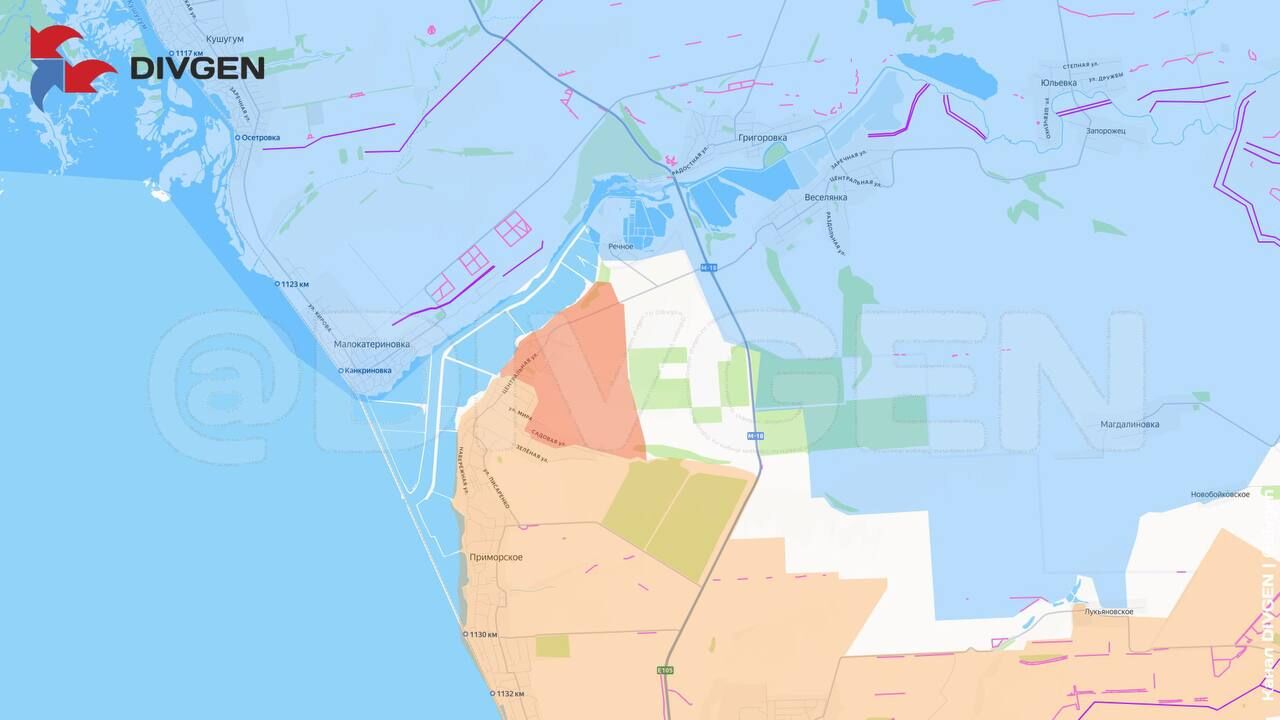 Lực lượng vũ trang Nga tiếp tục tiến công ở phía bắc Primorskoye. Có thông tin cho rằng tại khu vực Stepovoye-Malyye Shcherbaky, quân đội Nga đang mở rộng vùng kiểm soát về phía bắc và tây của Malyye Shcherbaky. (Hình 1.1)