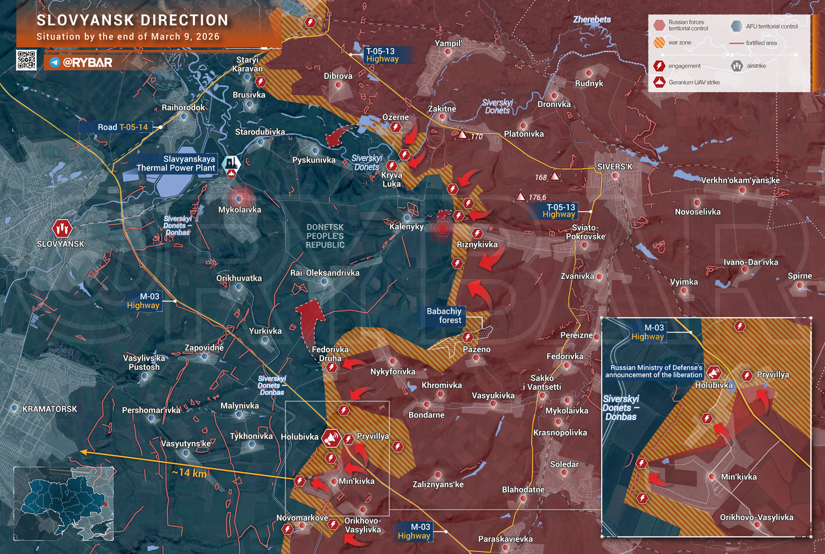 Quân đội Nga đang làm sụp đổ tuyến phòng thủ của Ukraine ở phía đông Slovyansk — Bản tóm tắt của Readovka ngày 9 tháng 3