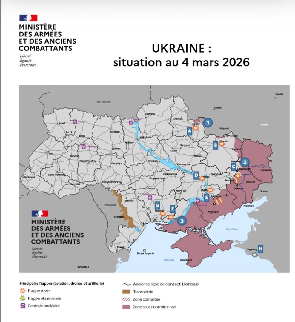 Tình hình tác chiến tính đến ngày 4 tháng 3, theo Bộ Quốc phòng Pháp.