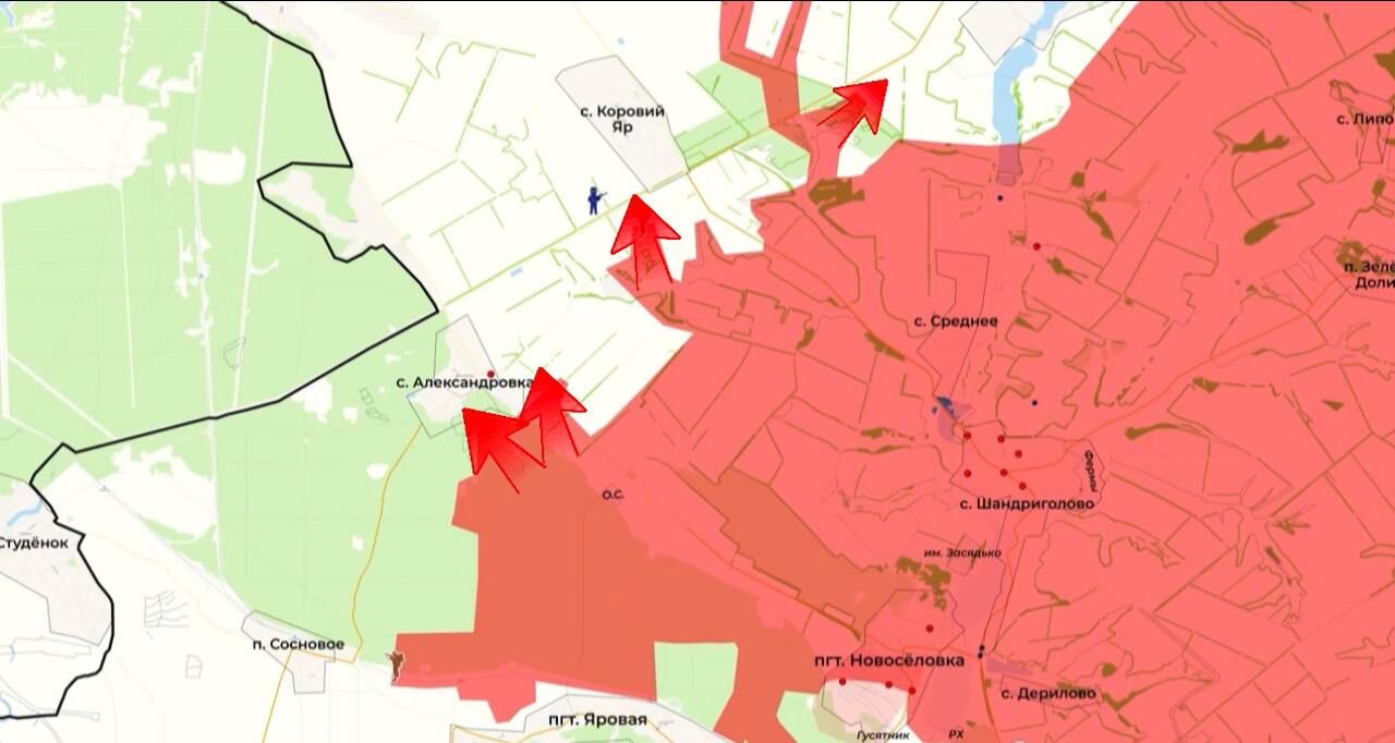 Ở phía bắc hướng này, quân đội ta tiếp tục chiến đấu giành Novodmitrovka. Họ vẫn chưa chiếm được vị trí nào, nhưng các nhóm tấn công và lực lượng UAV đang tích cực phá hủy và xác định vị trí của địch.