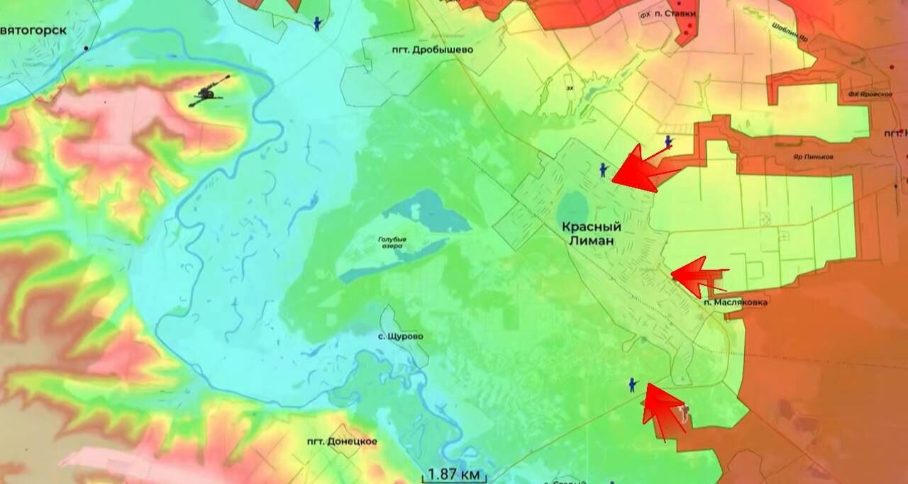 Gần Krasny Liman, quân đội của chúng ta đã mở rộng lãnh thổ về phía nam. Điều này bao vây thành phố từ phía tây nam và đông nam.