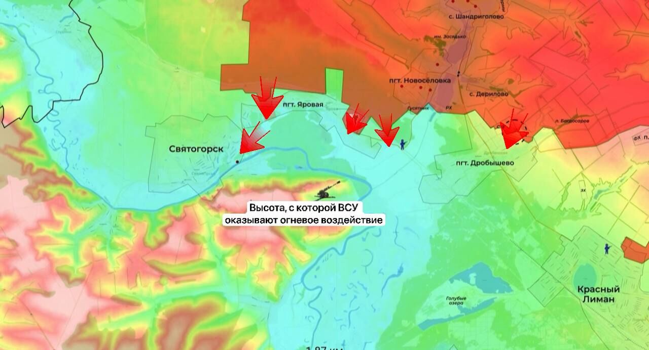 Quân đội Nga đang tiến dọc theo sông Seversky Donets ở Svyatogorsk, kiểm soát khu vực ven biển với các công sự tại các căn cứ bỏ hoang.