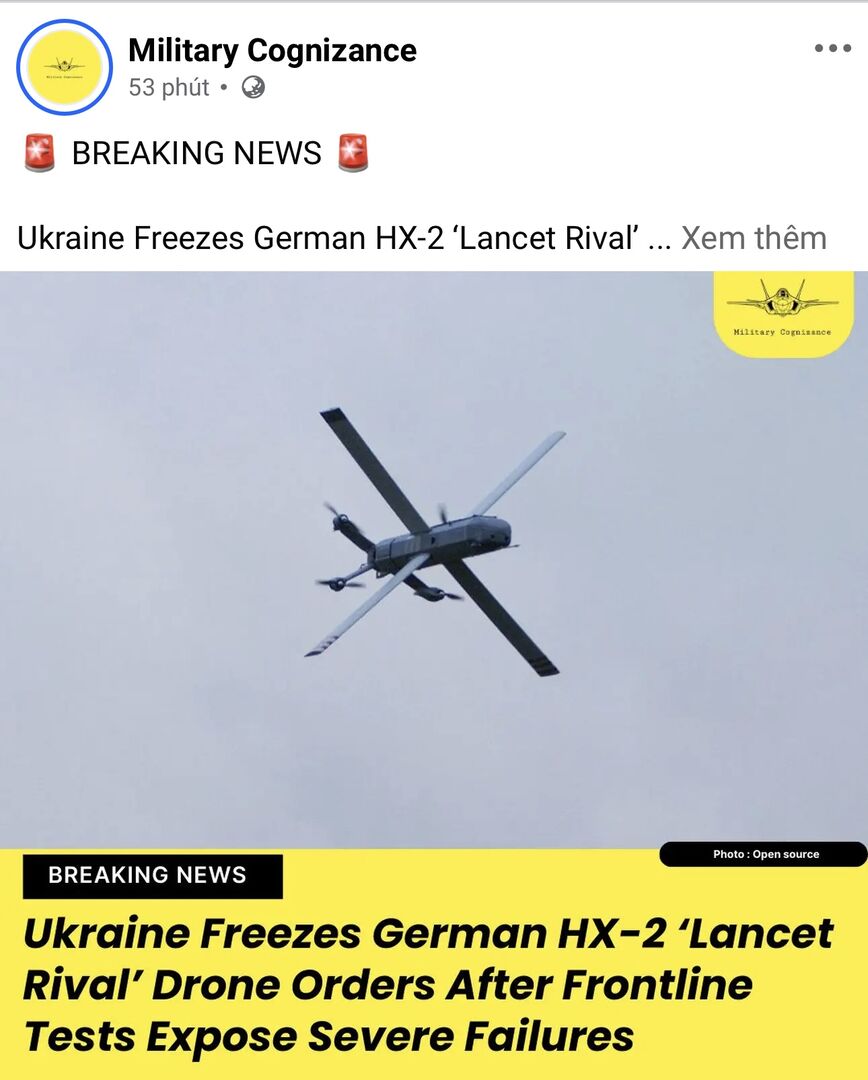 Theo Bloomberg, Ukraine đã tạm dừng các đơn đặt hàng bổ sung máy bay không người lái tấn công HX-2 từ công ty công nghệ quốc phòng Helsing của Đức sau khi hệ thống này gặp sự cố kỹ thuật trong các cuộc thử nghiệm trên tiền tuyến.