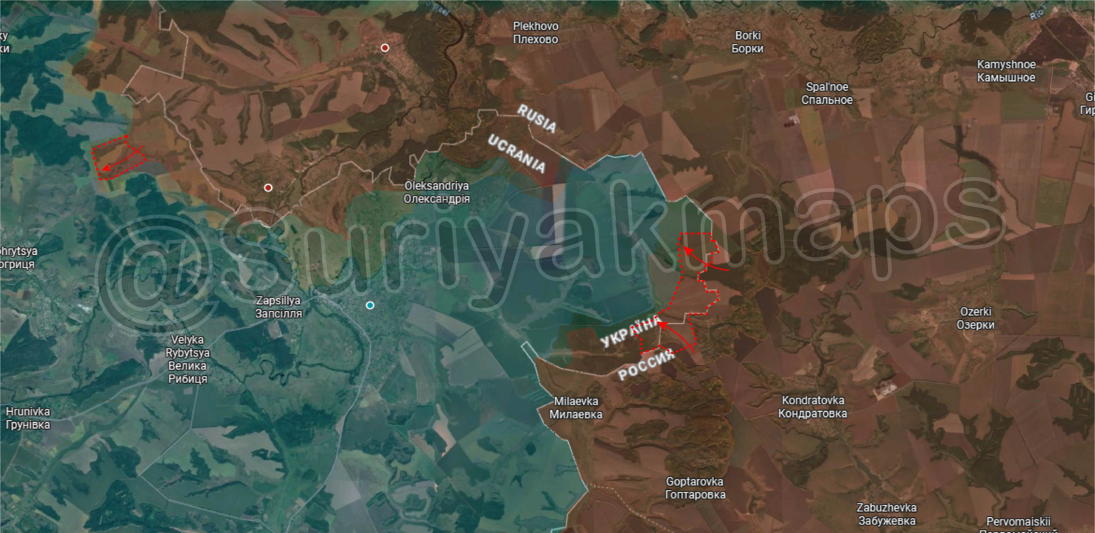 Tình hình mặt trận Sumy: Trong hai tuần qua, Quân Đội Nga đã chiếm được một loạt vị trí dọc biên giới giữa Nga và Ukraine ở phía bắc huyện Krasnopillia và các vị trí mới dọc biên giới phía tây bắc Gornal.