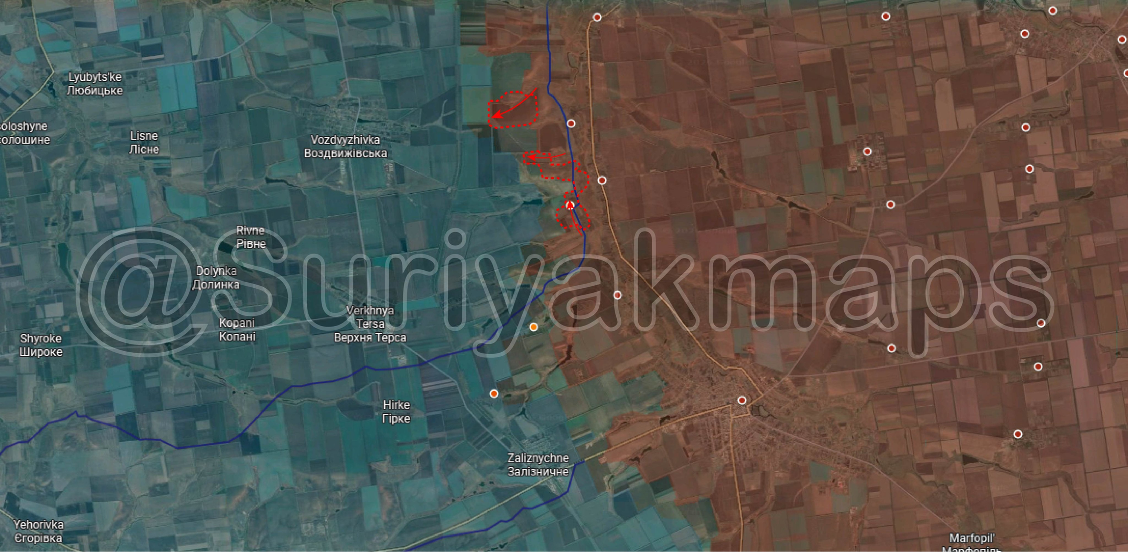 Lực lượng Nga đang tự tin tiến về phía tây Hulyai-Polye, phá hủy các công sự của địch, và các đơn vị tiền tuyến đã chiếm được làng Svyatopetrivka. Quân đội đã đến ngoại ô Zaliznychne và Staroukrainka, và đang chuẩn bị tấn công các khu định cư này. Sau khi chiếm được chúng, quân đội Nga có thể sẽ tấn công theo hướng Verkhnyaya Tersa, nơi binh lính có thể tiếp cận phía sau các công sự của địch.
