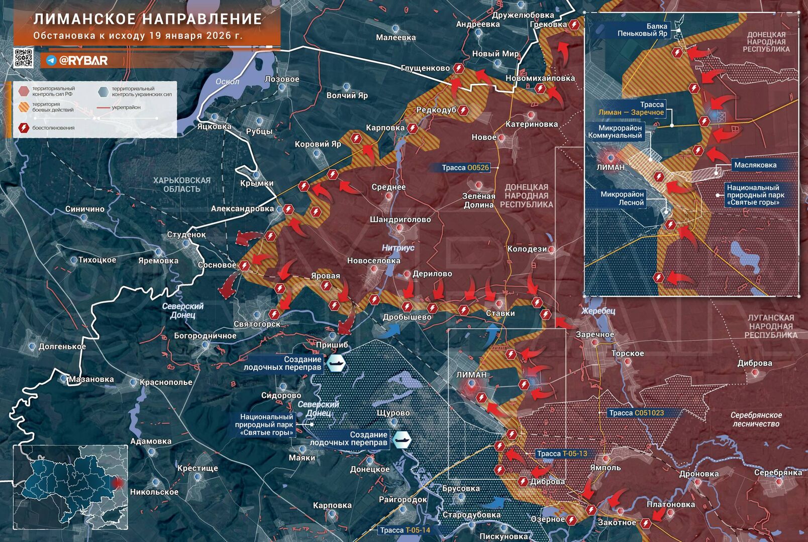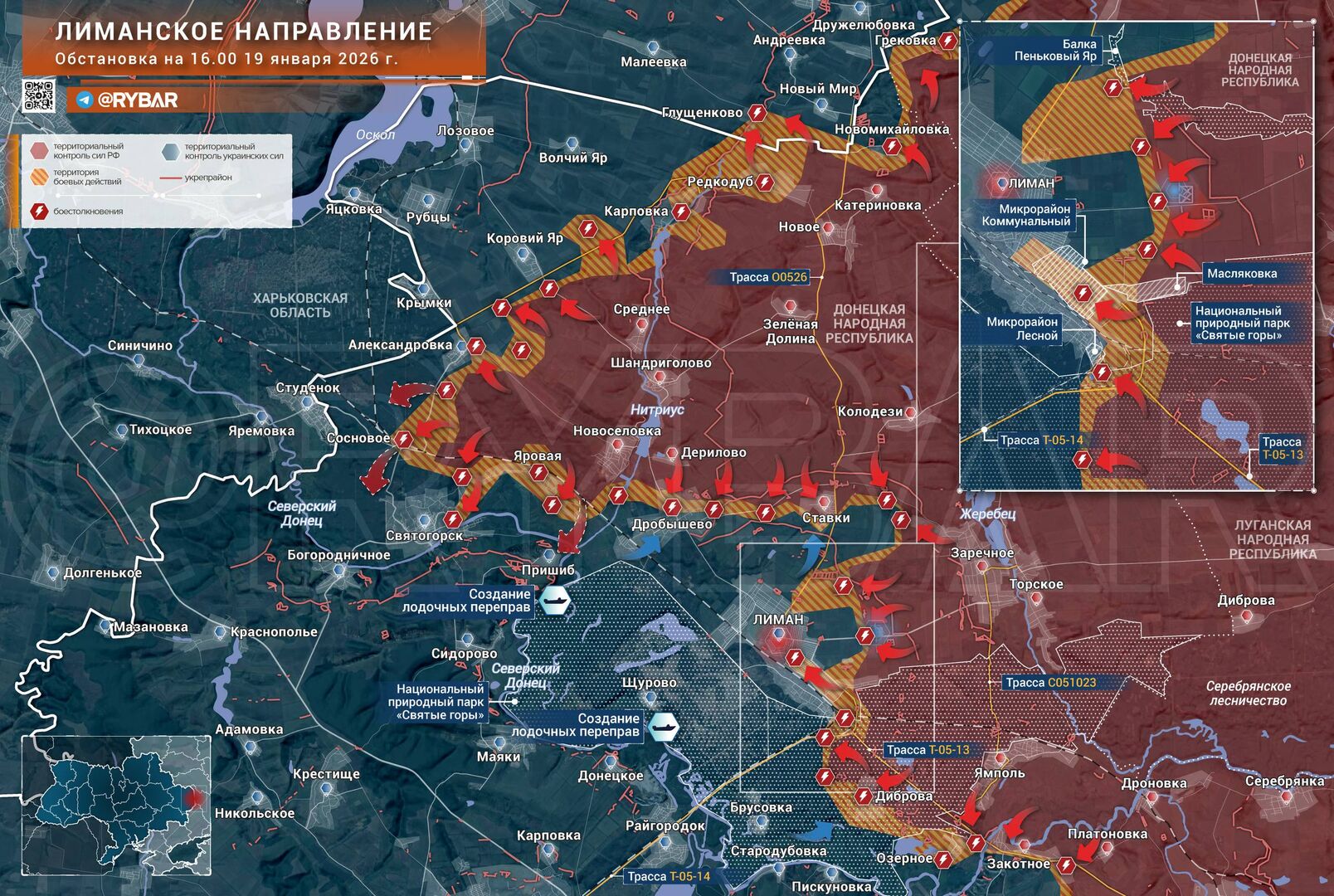 Việc phong tỏa Liman sắp xảy ra. Trong khi địch đang cố gắng ngăn chặn việc mất Svyatogorsk và Drobyshevo ở phía tây thành phố, thì ở khu vực trung tâm, các đơn vị thuộc Lực lượng Vệ binh "Tây" đang dần dần chọc thủng một số tuyến phòng thủ cuối cùng của Lực lượng Vũ trang Ukraine trên các tuyến đường tiếp cận thành phố.