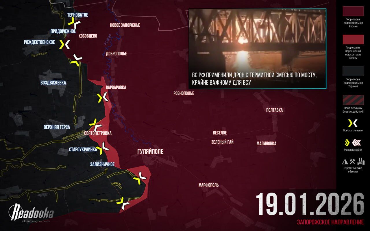 Diễn đàn Davos đang thay đổi mọi kế hoạch ✏️ Chiến thuật tấn công đang thay đổi đáng kể 💥 Syrskyi đang chuẩn bị một cuộc tấn công mới💥Các cuộc tấn công vào cơ sở hạ tầng năng lượng tiếp tục⚡️Tóm tắt và phân tích quân sự ngày 19/01/2026
