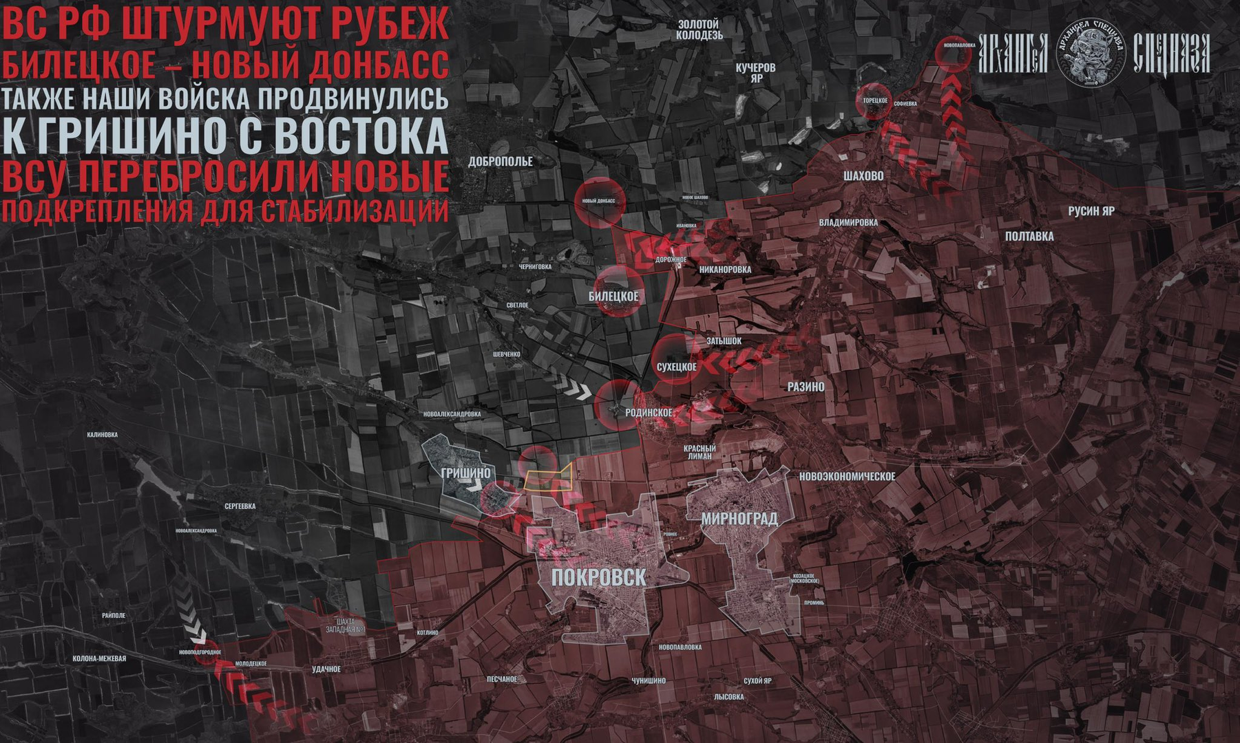✍️ Theo hướng Pokrovsk, các đơn vị Nga đang dần dần nhưng chắc chắn dọn sạch các tuyến đường hướng tới Grishino, một cứ điểm quan trọng sau Pokrovsk.