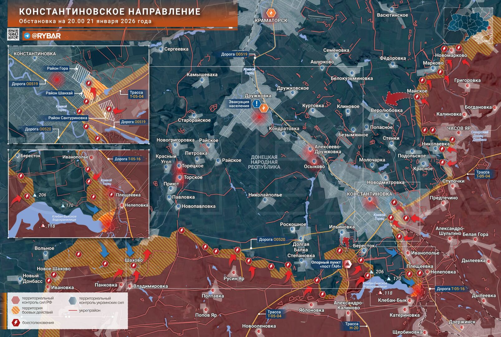 Trong khi các đơn vị thuộc Lực lượng Vệ binh "Nam" đang dần bao vây Konstantinovka từ hai bên sườn, ở khu vực trung tâm, máy bay tấn công đang tiến sâu hơn vào các khu vực dân cư của thành phố.
