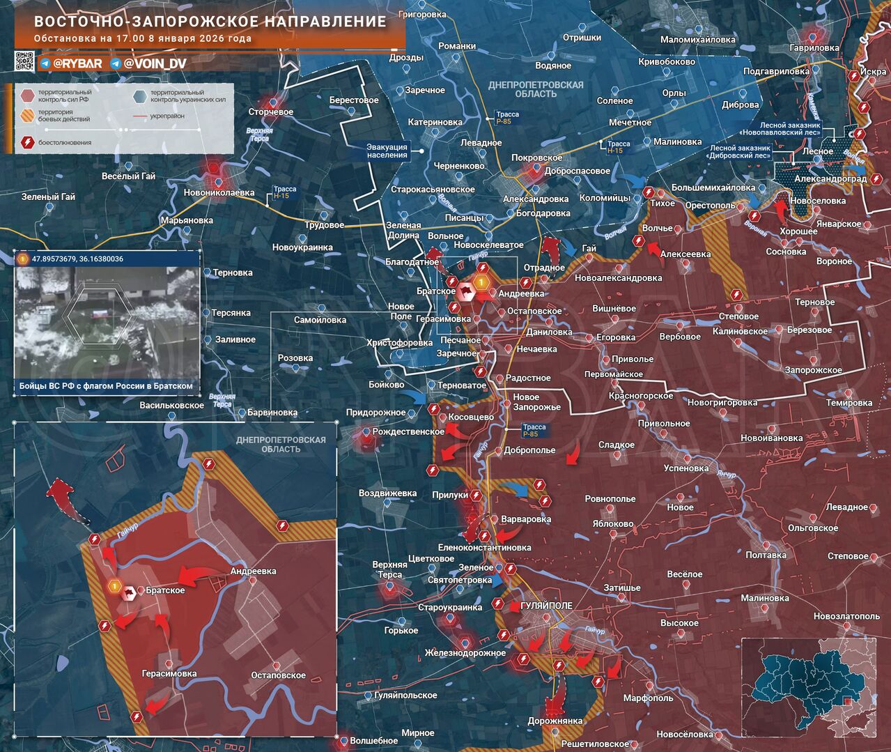 ➡️Các chiến binh thuộc Lữ đoàn Bộ binh Cơ giới Độc lập số 36 của Tập đoàn quân số 29 đã vượt sông Gaichur tại một điểm khác và tiến đến bờ trái. Điều này cũng được hỗ trợ bởi thời tiết bất lợi trong những ngày gần đây, cho phép máy bay tấn công di chuyển tự do hơn. Tiến xa hơn về phía bắc Bratskoye sẽ cho phép hình thành gọng kìm bao vây Pokrovskoe từ phía tây và cắt đứt một trong những tuyến đường tiếp tế.
