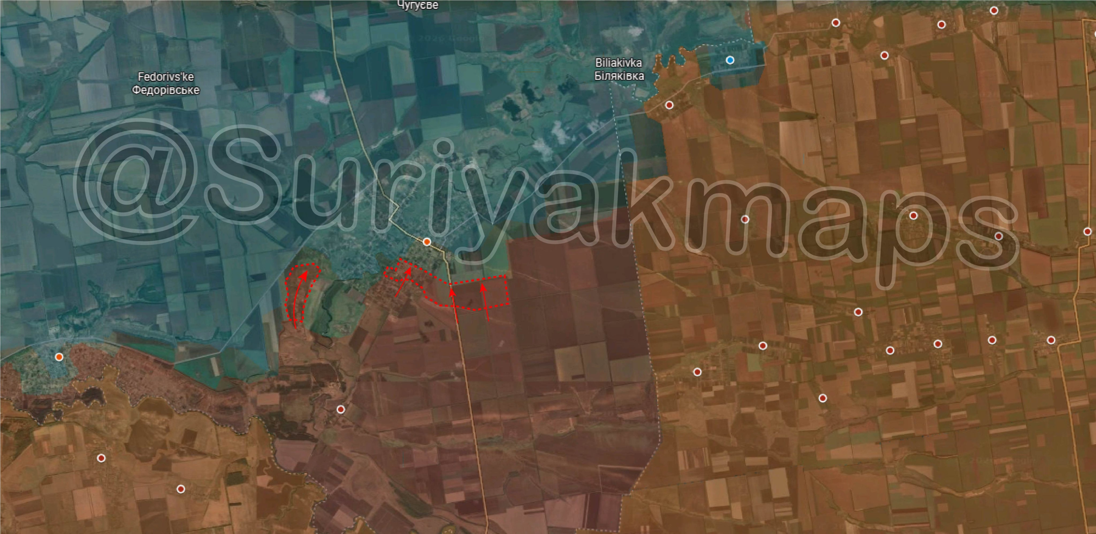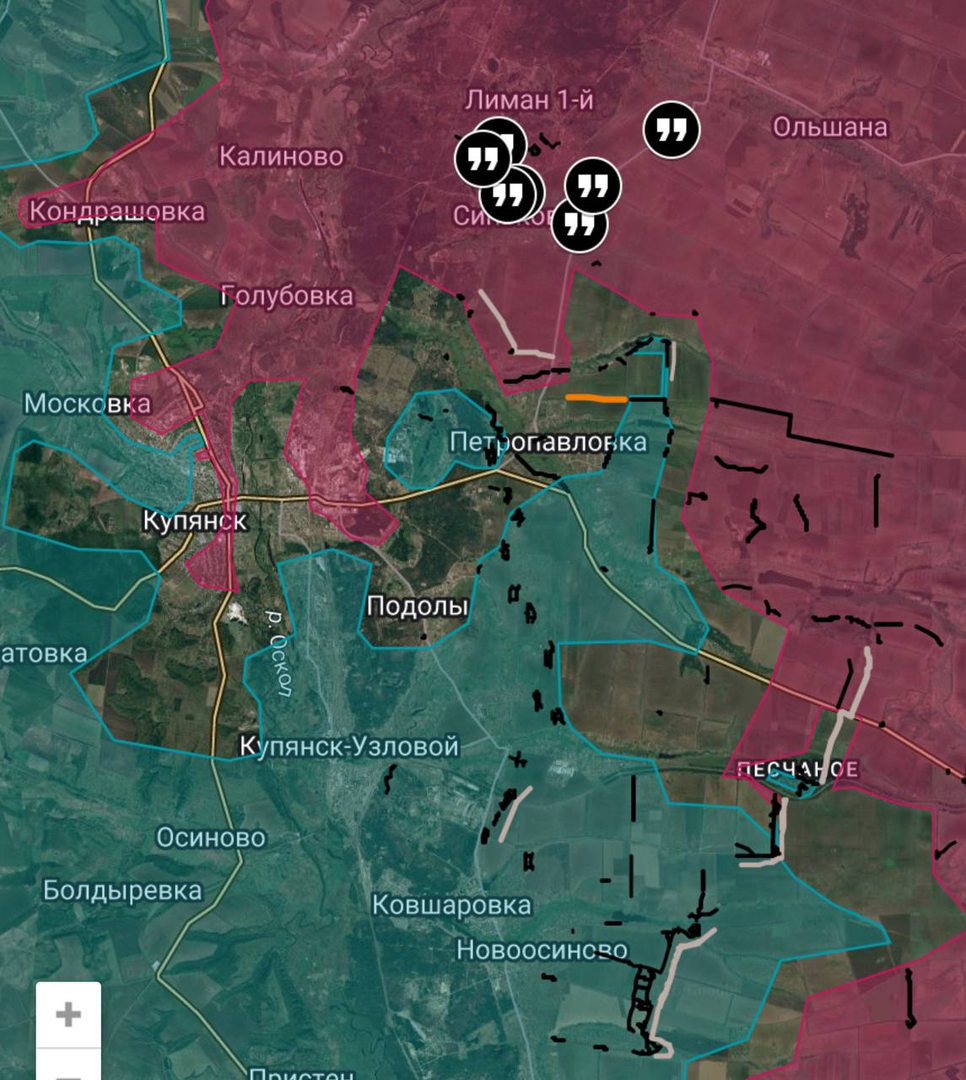 Nhưng quân Nga cũng đang tiến về Bylitske theo hướng Dobropillia và được cho là đã tái chiếm làng này. 🚁➡️ Tại Hryshyne, các đoạn video khác đã được định vị địa lý cho thấy lính bộ binh Nga ở trung tâm. 📹📍👣