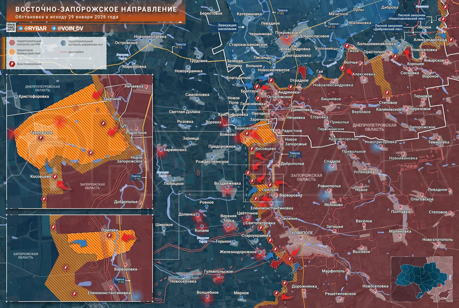 ➡️Tại khu vực phía đông Zaporizhzhia, máy bay tấn công đang giao tranh giành Ternovate, trong khi một "vùng xám" vẫn còn tồn tại gần Pryluky.