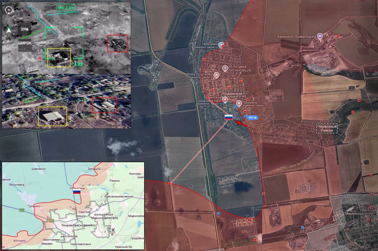 Một vị trí tiền tuyến của Lực lượng vũ trang Nga trong khu dân cư của Rodinskoye đang bị Lực lượng vũ trang Ukraine tấn công. Lực lượng vũ trang Nga đã tiến 500 mét về phía nam của thị trấn và chiếm giữ các vị trí mới.