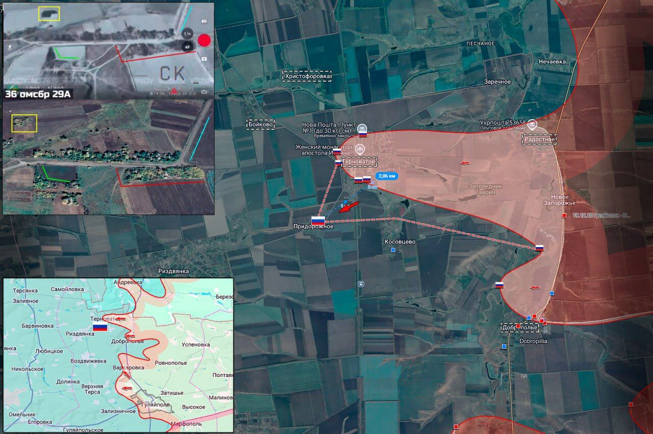 Các đơn vị thuộc nhóm lực lượng "Phía Đông" tiếp tục xây dựng đầu cầu trên bờ tây sông Gaichur. Sau khi giải phóng Ternovatoye, các đơn vị tấn công của Lực lượng Vũ trang Nga đã tiếp nối thành công và tiến vào làng Pridorozhnoye, nơi các lá cờ cũng được treo lên hôm nay. Tuyến phòng thủ đã dịch chuyển xa hơn về phía tây, sâu hơn vào tuyến phòng thủ của địch.