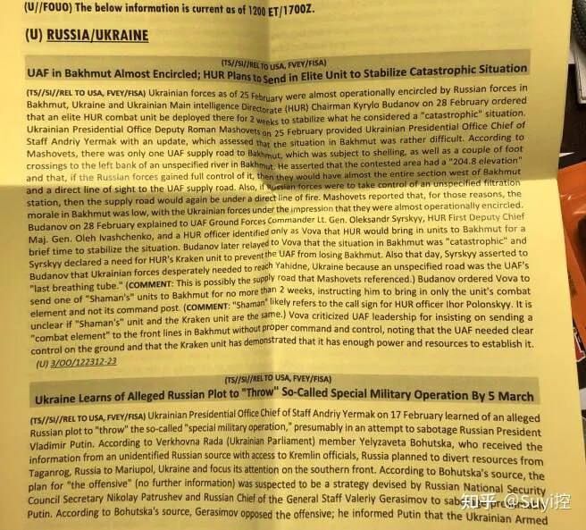 Hiện tại đã có thêm nhiều trang trong số tài liệu rò rỉ được công khai. Trong đó bao gồm tình hình Bakhmut vào cuối tháng Hai và việc Tổng thống Zelensky muốn ném bom lãnh thổ của Nga, cụ thể là Rostov.