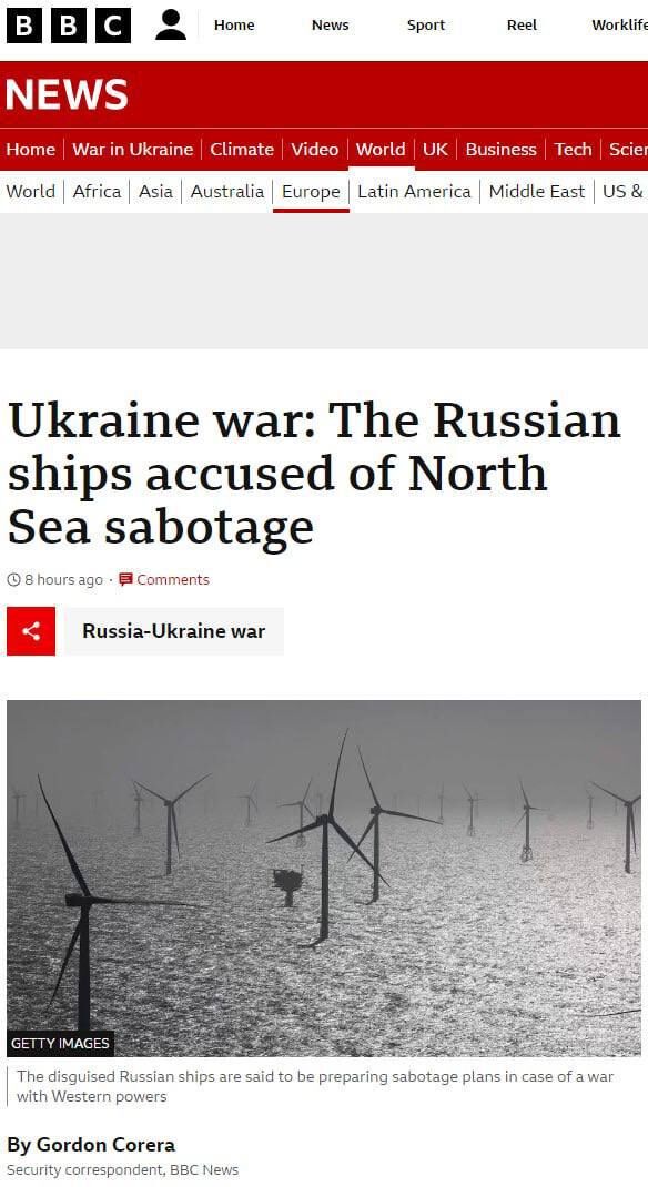 "#Nga có một chương trình phá hoại các trang trại gió và cáp thông tin liên lạc ở Biển Bắc, theo 'cuộc điều tra' chung của các đài truyền hình công cộng ở #Đan Mạch, #Na Uy, #Thụy Điển và #Phần Lan."