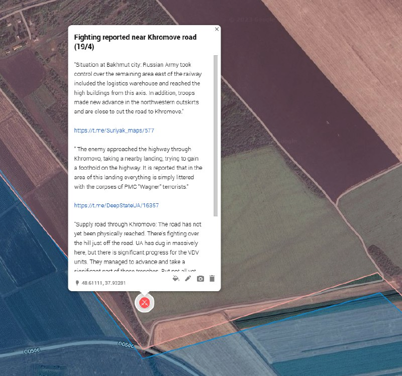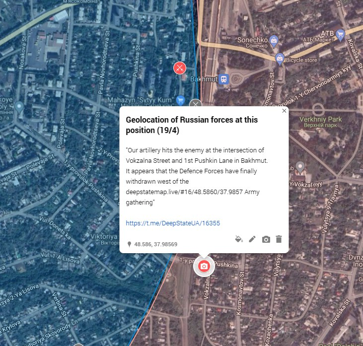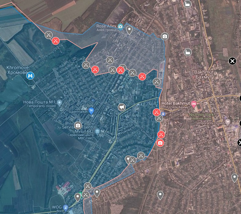Cập nhật từ Mặt trận Bakhmut: Vị trí địa lý mới nhất từ Thành phố Bakhmut cho thấy các lực lượng Ukraine đã rút hoàn toàn khỏi phía đông của tuyến đường sắt đi qua trung tâm Thành phố Bakhmut.