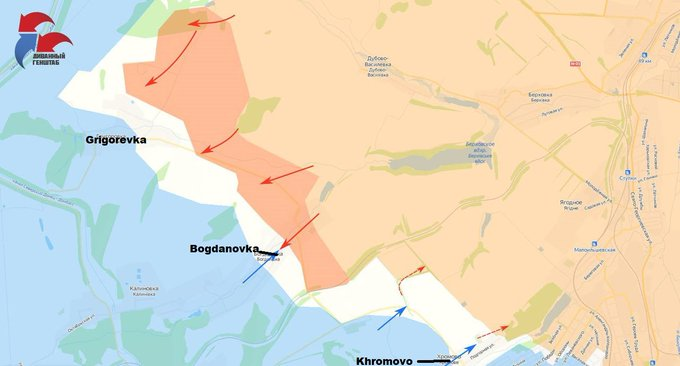 Khu vực Khromovo- Wagner đã đạt được một số tiến bộ dọc theo khu dân cư phía trên. Khromovo là một khu vực xám, khi pháo binh của nhóm Wagner bao trùm toàn bộ ngôi làng. Tất cả các phương tiện vào làng đều bị đốt cháy. Bản thân ngôi làng gần như bị phá hủy.