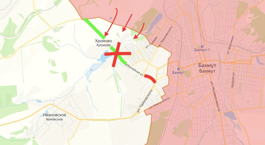 Bản đồ của anh Yuri công bố Wagner PMC đã chiếm Khromovo. Tuy nhiên anh phóng viên chủ kênh @brusinf Александр Симонов theo đoàn quân thì bảo đừng có cầm đèn chạy trước oto, không có thôgn tin nào như vậy cả.