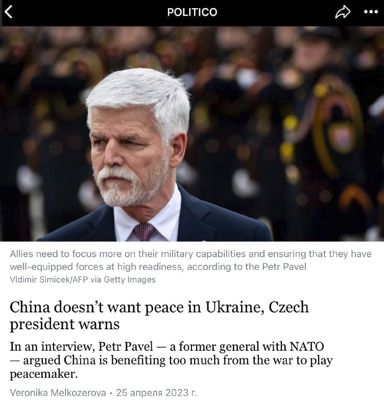 🇨🇿🇨🇳 Tổng thống Cộng hòa Séc chắc chắn rằng Trung Quốc được hưởng lợi từ việc tiếp tục xung đột ở Ukraine