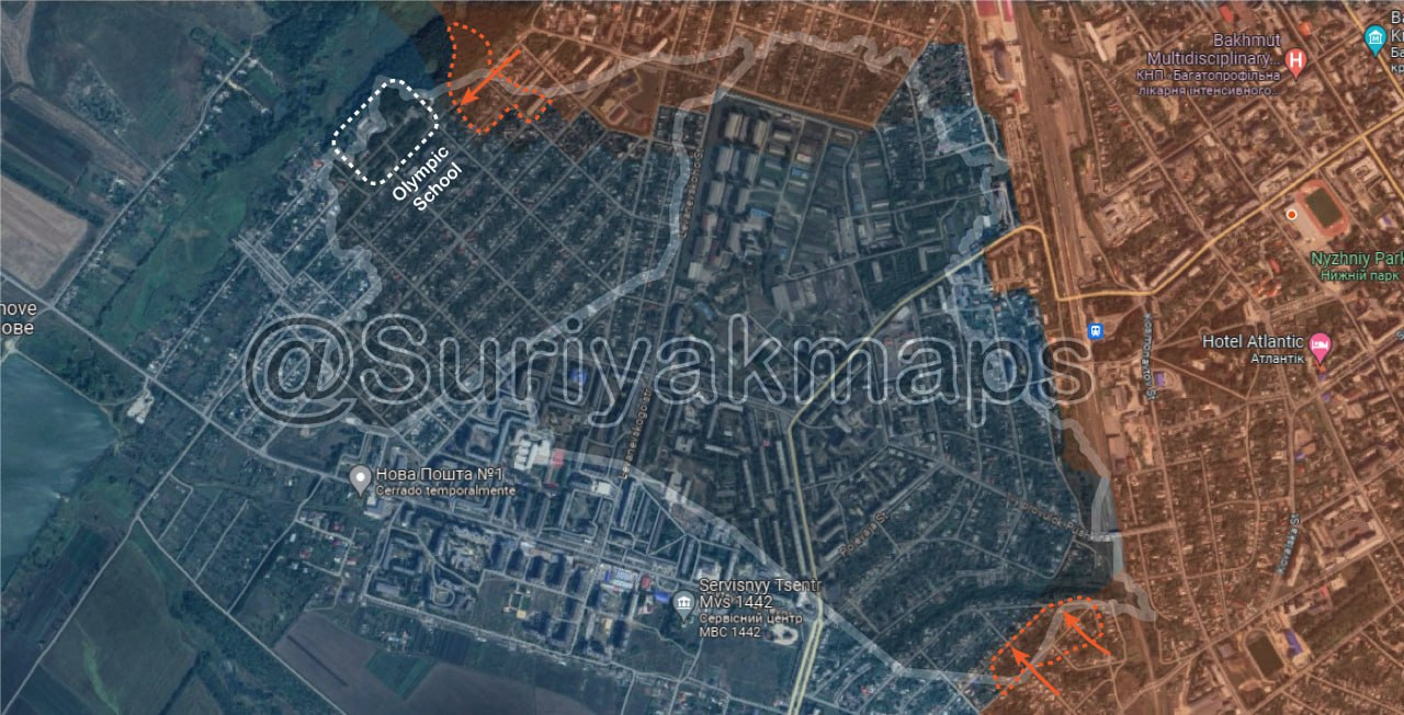 Tình hình tại thành phố Bakhmut: Quân đội Nga tiến dọc theo đường Cherniakhovskoho và Tolbukhina và rất gần Trường Olympic. Trong khi đó, từ trục phía nam, quân đội đã tiến một bước nhỏ và tiến đến đường Hryhoriia Skovorody.
