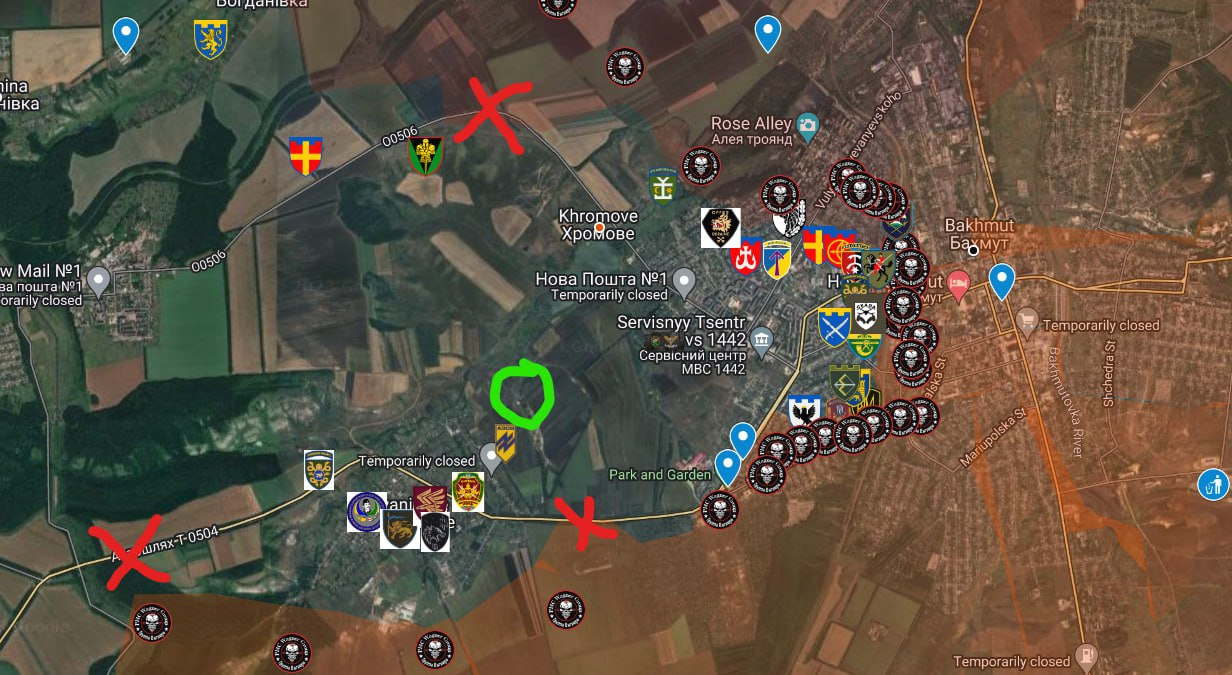 Both Roads of Death (nearby to Krasnoye and Khromove) have been physically cut by Airborne Forces and Fighters of the PMC Wagner. One dirt road remains however you must travel through Krasnoye which is currently under siege by Airborne Fighters.