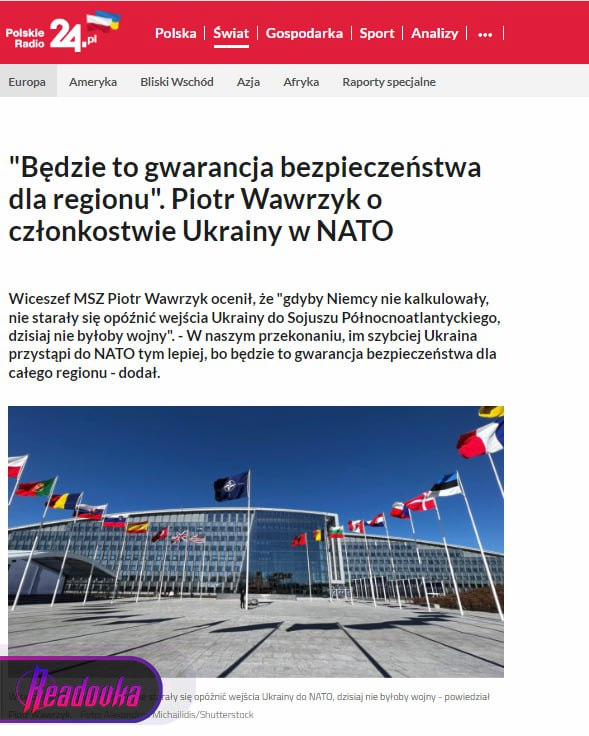 Thứ trưởng Ngoại giao Ba Lan Wawrzyk đã đệ đơn kiện Đức, theo ý kiến của ông, là nguyên nhân dẫn đến việc Ukraine vẫn chưa phải là thành viên của NATO. Wawrzyk nói rằng nếu Đức, Pháp và một số quốc gia khác không ngăn cản Ukraine gia nhập liên minh, thì "sẽ không có chiến tranh bây giờ." Wawrzyk cũng nhấn mạnh rằng Đức vẫn từ chối thảo luận nghiêm túc về con đường gia nhập NATO của Ukraine.