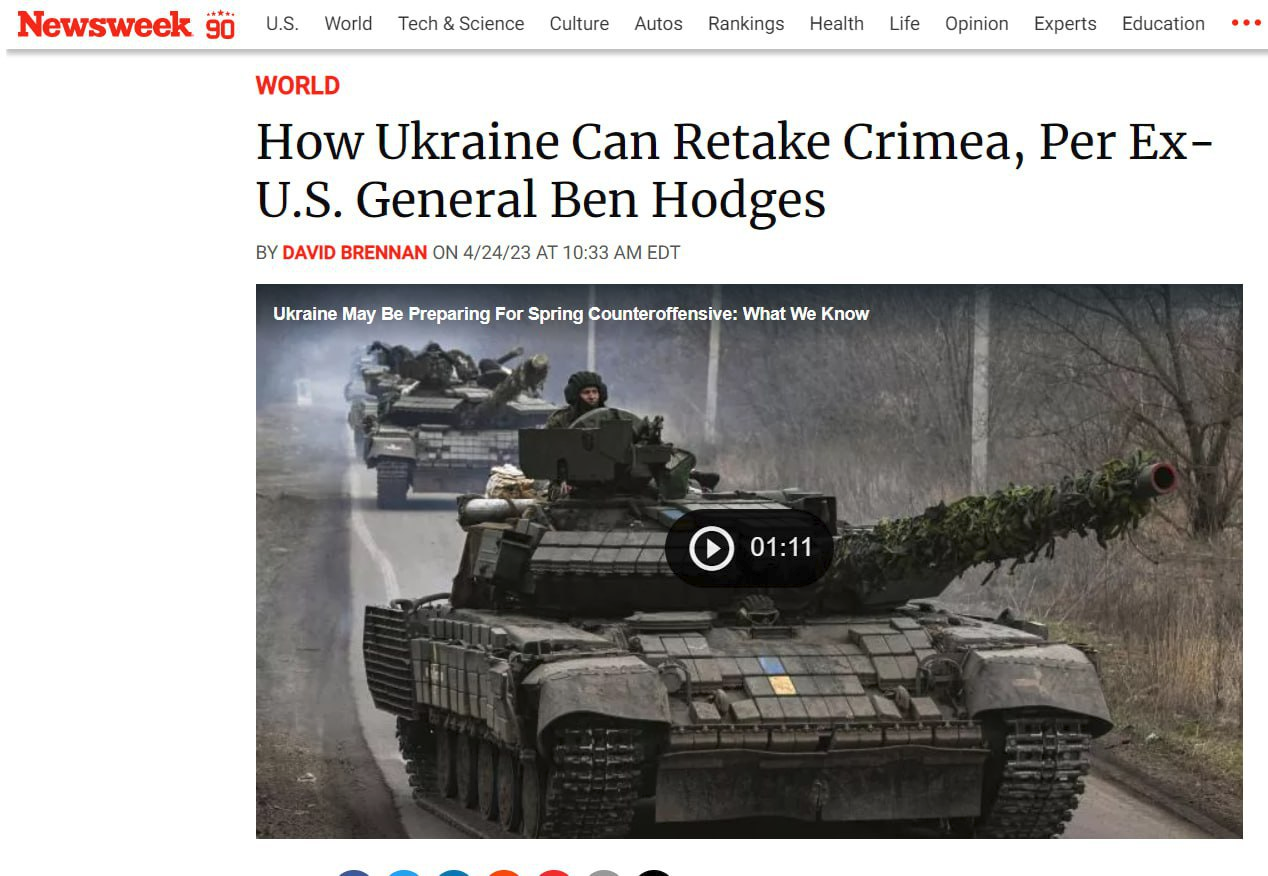 ✅Cựu chỉ huy Quân đội Hoa Kỳ tại Châu Âu, Tướng Ben Hodges, gợi ý rằng Kyiv sẽ cố gắng chiếm Crimea bằng cách cắt đứt "cây cầu trên bộ" và bao vây.