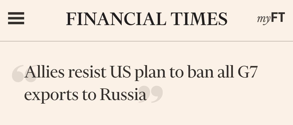 🇪🇺 🇯🇵 🇬🇧 Đại diện các nước EU và Nhật Bản phản đối đề xuất của Mỹ cấm hoàn toàn việc xuất khẩu của các nước G7 sang Nga