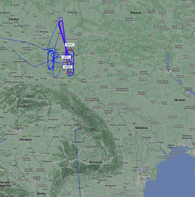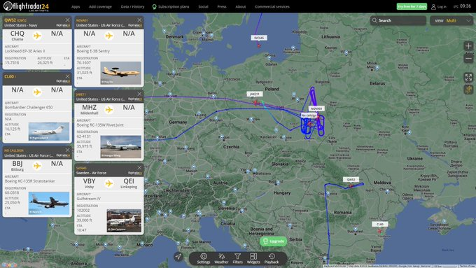 Một số lượng máy bay ISR bất thường đang bay gần biên giới Ukraine () vì hai máy bay E-3 Sentry của Không quân Hoa Kỳ và một chiếc RC-135 Rivet Joint cũng đang bay trên quỹ đạo phía trên phía đông Ba Lan ().