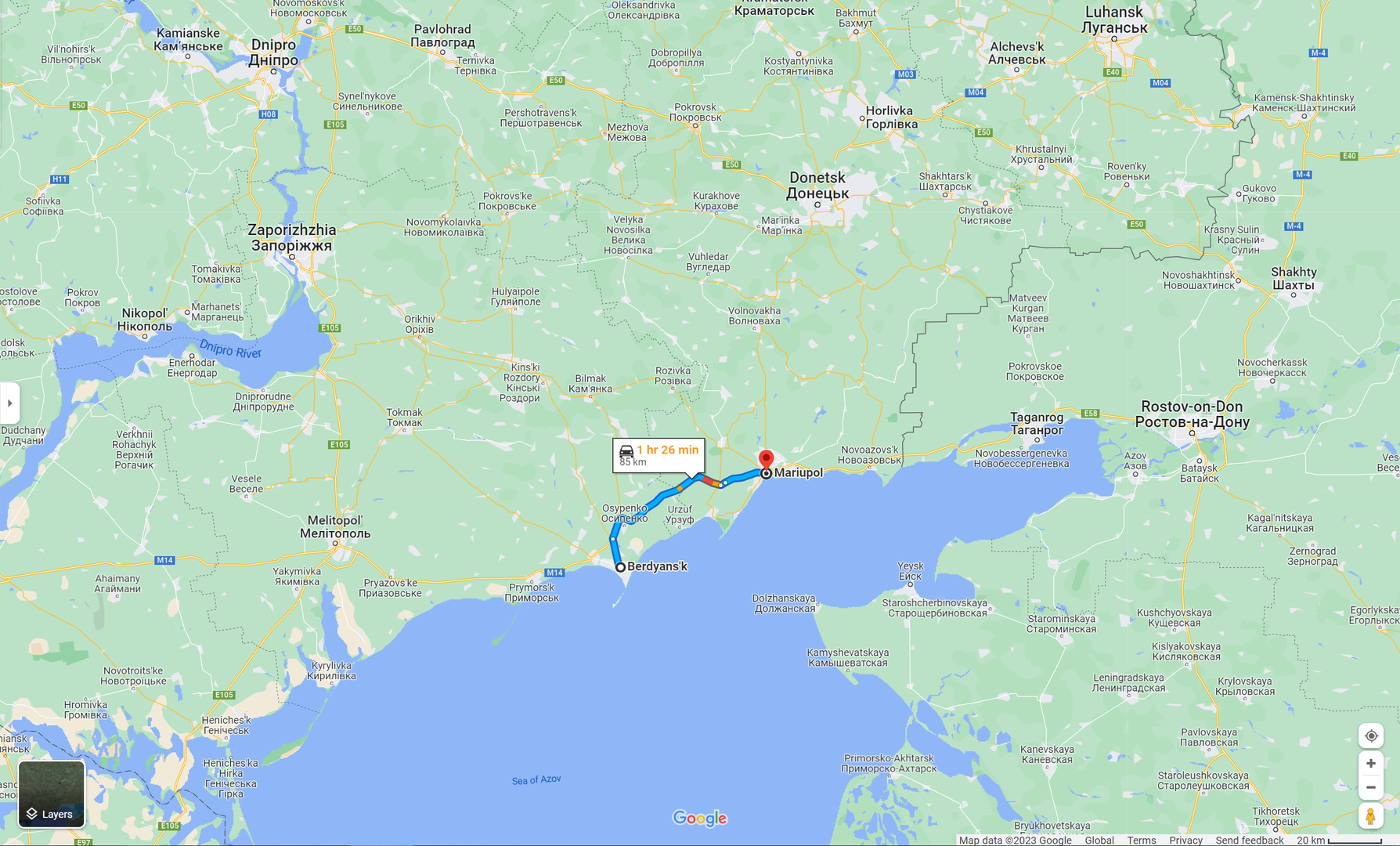 Các nguồn Ukraine lưu ý rằng tuyến đường từ Mariupol đến vành đai Berdyansk (khoảng 80 km) hoàn toàn chở đầy xe tải của Nga