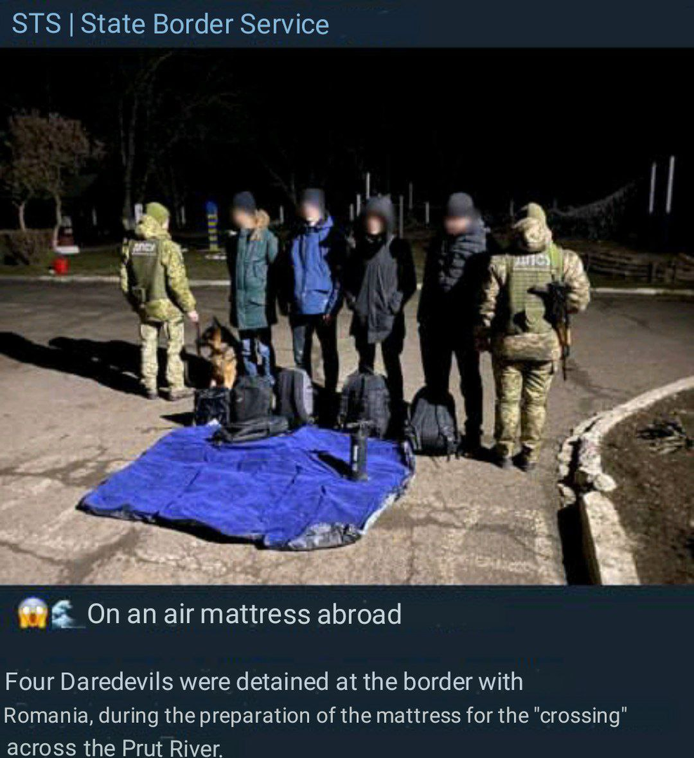 Ở biên giới với Romania, bốn người Ukraine cố gắng vượt biên qua sông Prut trên một tấm nệm bơm hơi đã bị bắt giữ.