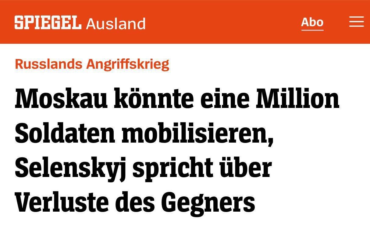 “Theo Cục Tình báo Liên bang Đức (BND), Nga có thể huy động thêm tới một triệu binh sĩ. “Khoảng 300.000 người đã được huy động vào mùa thu năm ngoái, một số vẫn đang trong quá trình huấn luyện, một phần đã tham chiến,” Giám đốc BND Bruno Kahl cho biết. "Tiềm năng huy động hiện tại của Nga có thể lên tới một triệu người, nếu Điện Kremlin cảm thấy điều này là cần thiết".