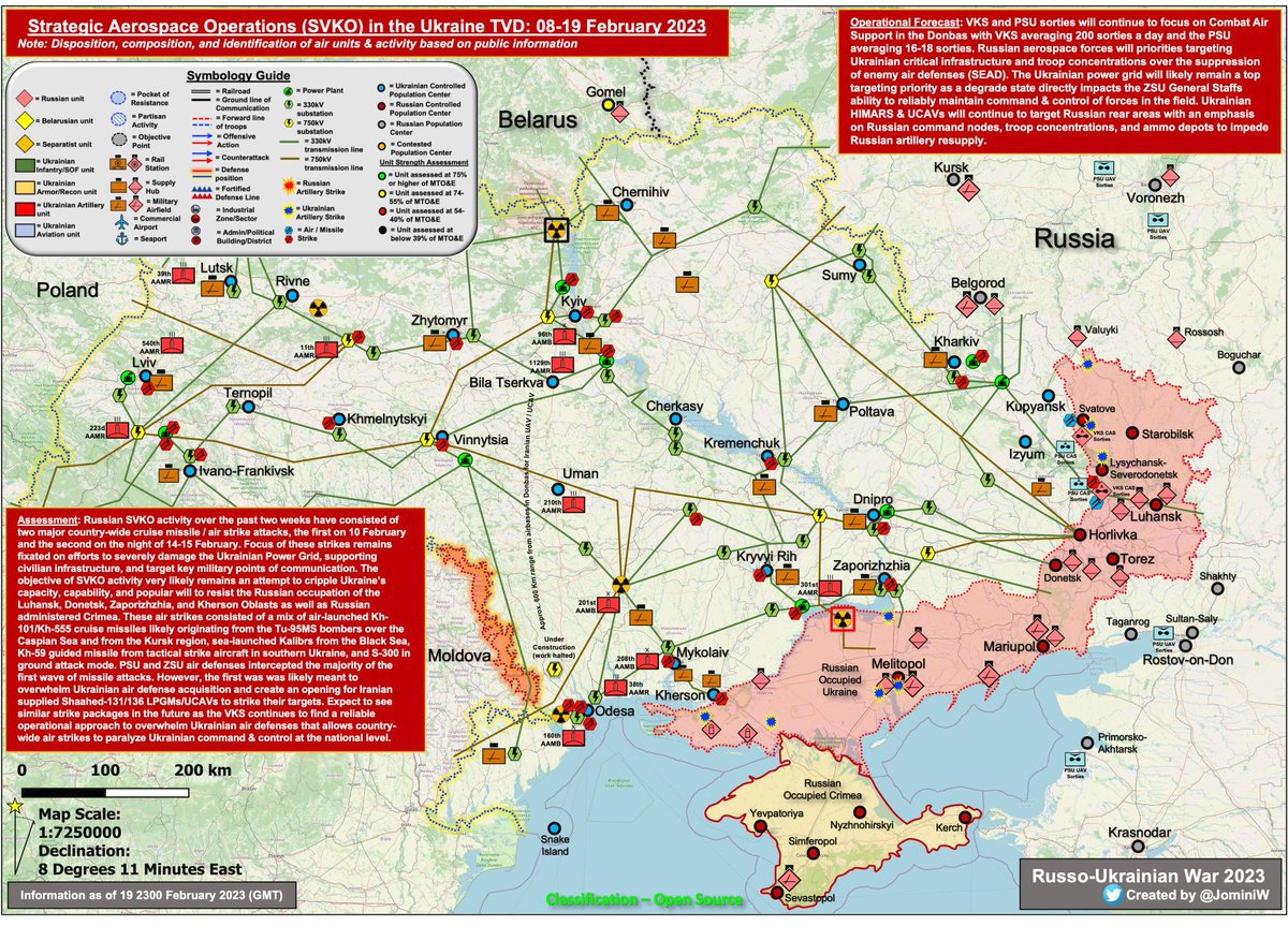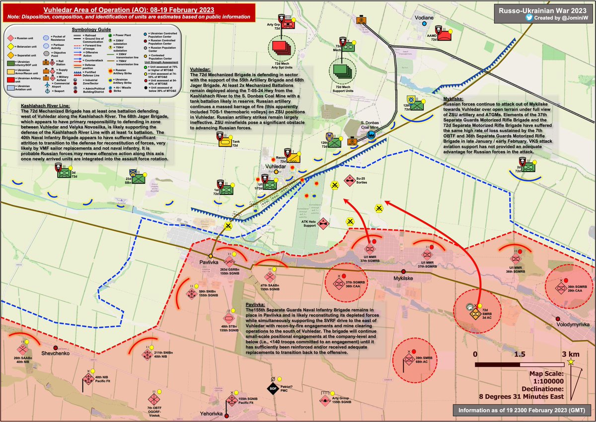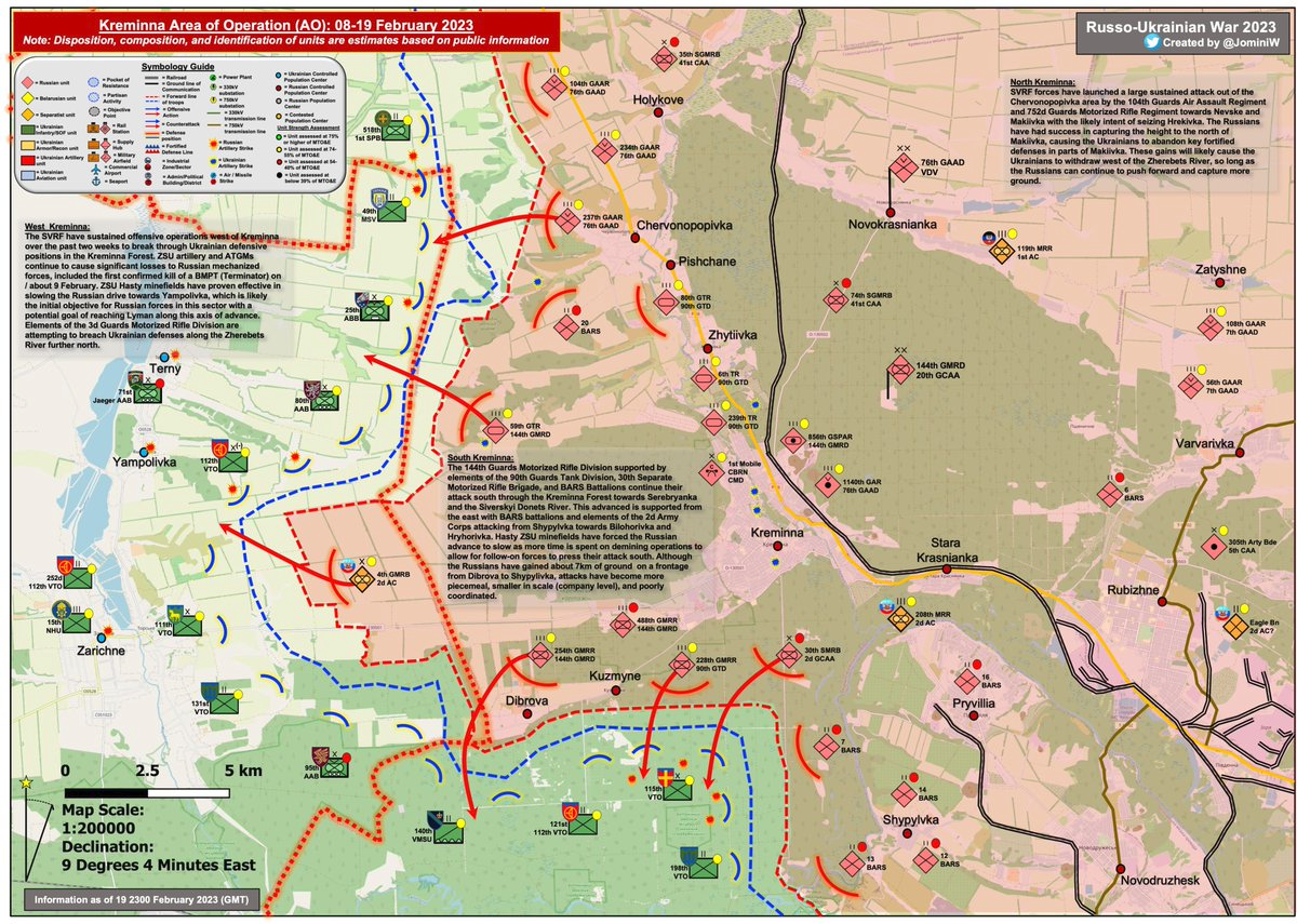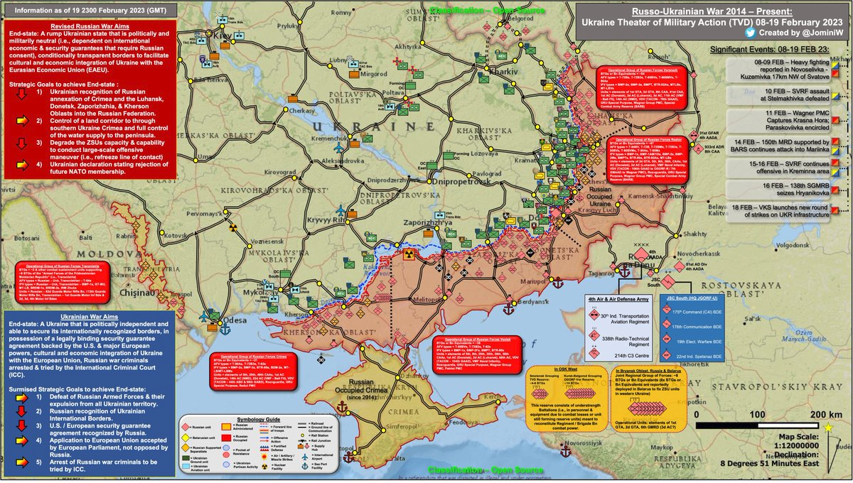 2 tuần vừa qua của tháng 2 chứng kiến Cuộc tấn công mùa đông của Nga tăng cường khi các cuộc tấn công lớn tiếp tục diễn ra ở Kreminna, Bakhmut và Vuhledar. Nga giành được lợi thế không nhiều, phòng thủ Ukraine tiếp tục giữ vững.