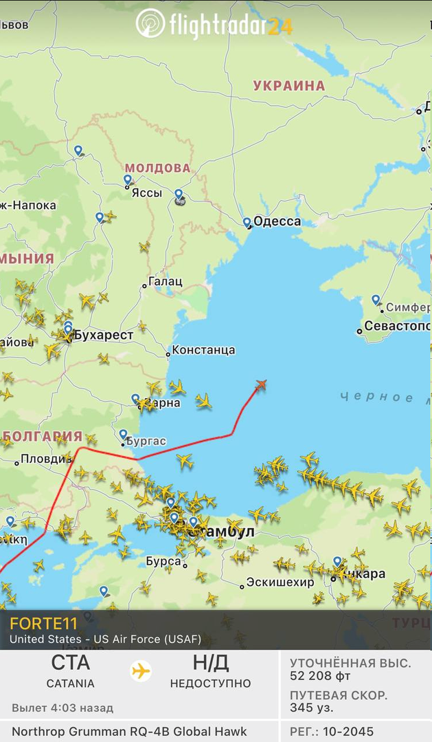 Một dấu hiệu trinh sát thú vị: đã lâu không có UAV RQ-4B của Mỹ bay qua Biển Đen nhưng giờ đã lò dò đến.