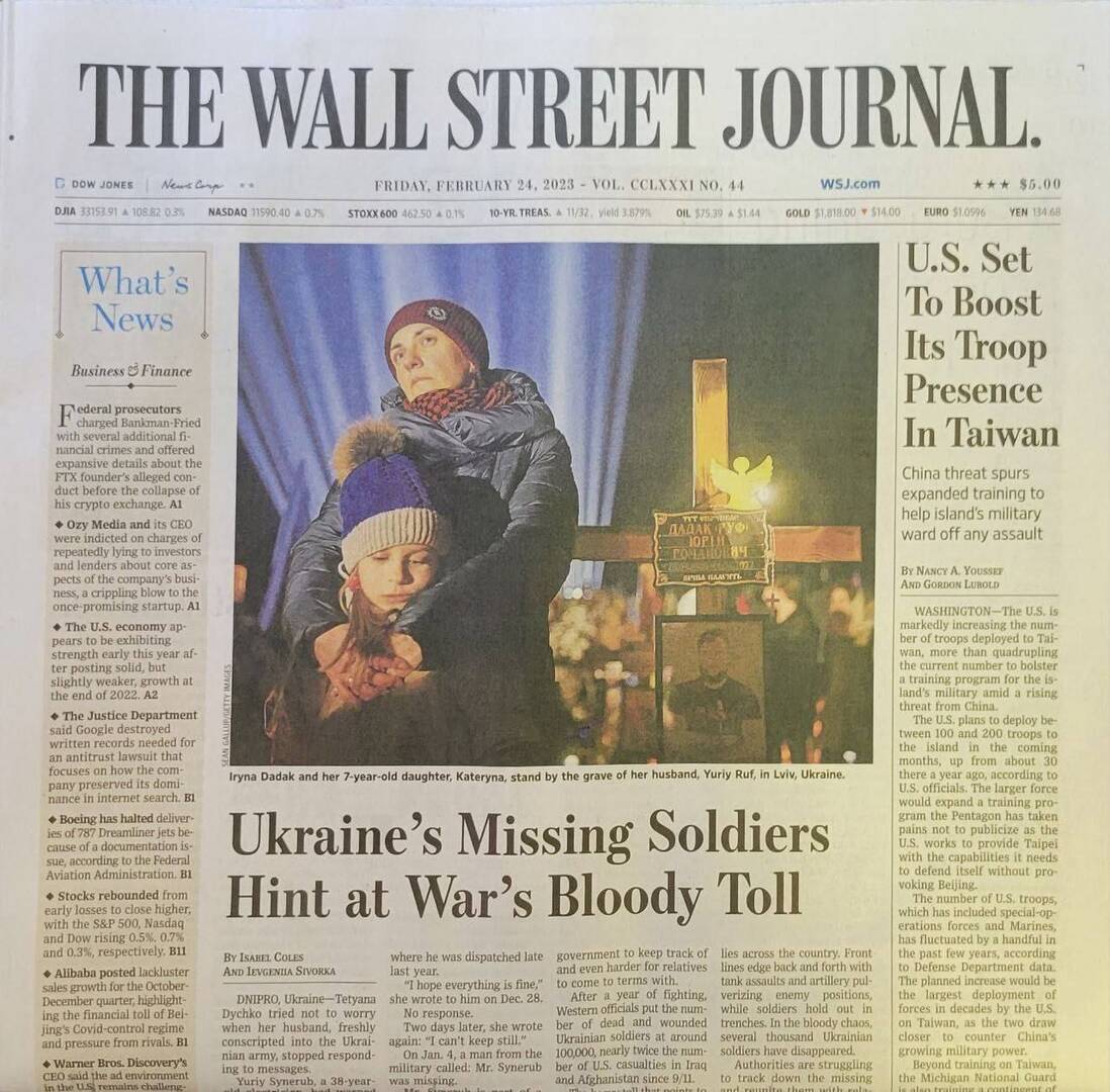 Vào ngày kỷ niệm chiến dịch quân sự đặc biệt của Nga, tờ Wall Street Journal bất ngờ và trên trang nhất (!) đăng một bài báo về số lượng lớn quân nhân Ukraine mất tích . Bài báo, trích dẫn các quan chức phương Tây, báo cáo rằng hơn 100.000 quân nhân Ukraine đã chết hoặc bị thương.