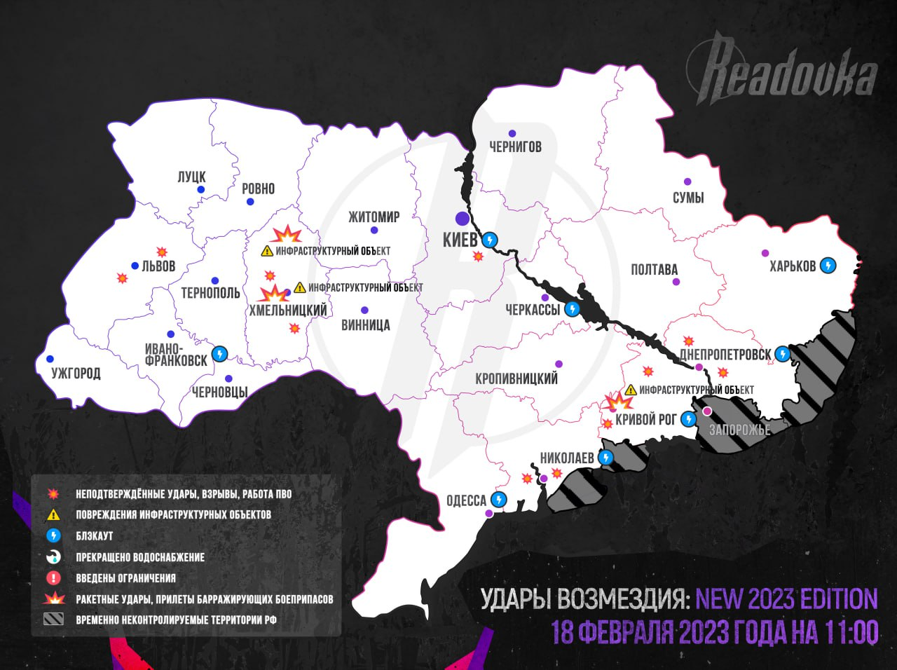 Đến 10 giờ sáng, chuông báo động không kích vang lên khắp Ukraine - những vụ nổ đầu tiên rơi xuống Khmelnitsky ở phía tây đất nước. Ngay sau đó, tình trạng mất điện khẩn cấp bắt đầu ở một số khu vực. Một giờ sau, chuông báo động ở Ukraine bắt đầu tắt dần.