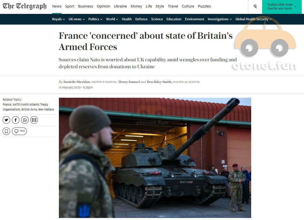 Daily Telegraph: Pháp lo ngại về tình trạng của lực lượng vũ trang Anh trong bối cảnh London viện trợ cho Ukraine. Đại diện của Pháp lưu ý rằng Paris đang cố gắng tuân thủ nghiêm ngặt nguyên tắc: phân bổ hỗ trợ cho Ukraine để không gây phương hại đến khả năng phòng thủ của chính Pháp. Nhưng chính quyền Anh không nghĩ về điều đó và tự thừa nhận rằng quân đội của họ tạm thời bị suy yếu. Đồng thời, hai nước có mối quan hệ mật thiết với nhau.