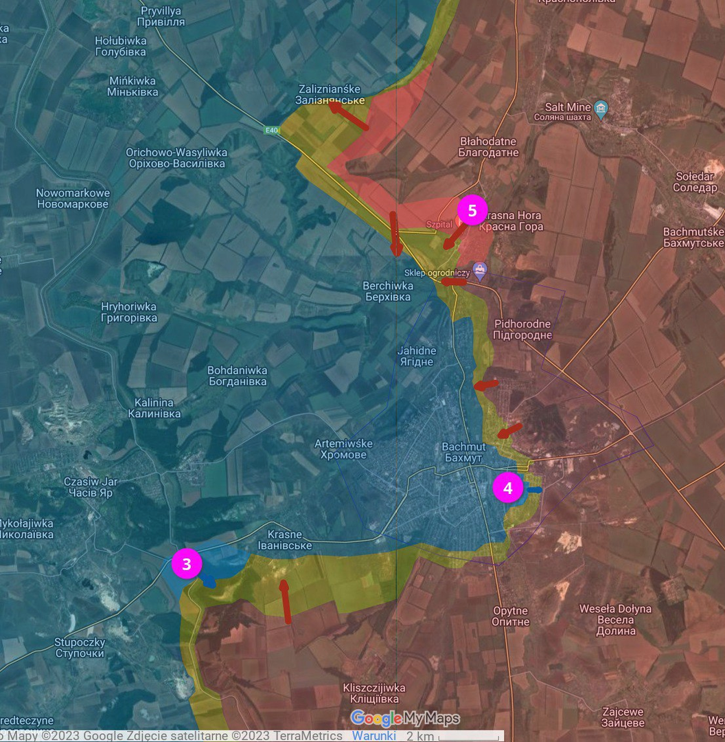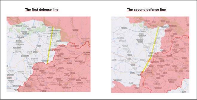 Tuyến phòng thủ thứ hai của Ukraine, từ bắc xuống nam, chạy từ Siversk đến tụ điểm Soledar, Bakhmut, New York rồi dọc theo tuyến ngừng bắn cũ của Cộng hòa Donetsk.