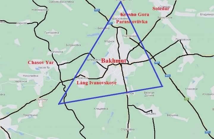 Krasna Gora, nằm ở phía tây bắc thành phố Bakhmut và Ivanivske ở phía nam (hai cánh hệ thống phòng thủ AFU), tạo thành thế trận hỗ trợ tam giác (Ảnh 1) với thành phố chính Bakhmut. Đặc biệt tại đây, AFU đặt trận địa hỏa lực pháo binh, uy hiếp tất cả các hướng tấn công vào Bakhmut. Do đó, quân đội Nga chọn giải pháp giải phóng Krasna Gora trước, không chỉ để siết chặt hơn Bakhmut mà điều quan trọng là, xoá sổ trận địa hỏa lực pháo binh AFU.