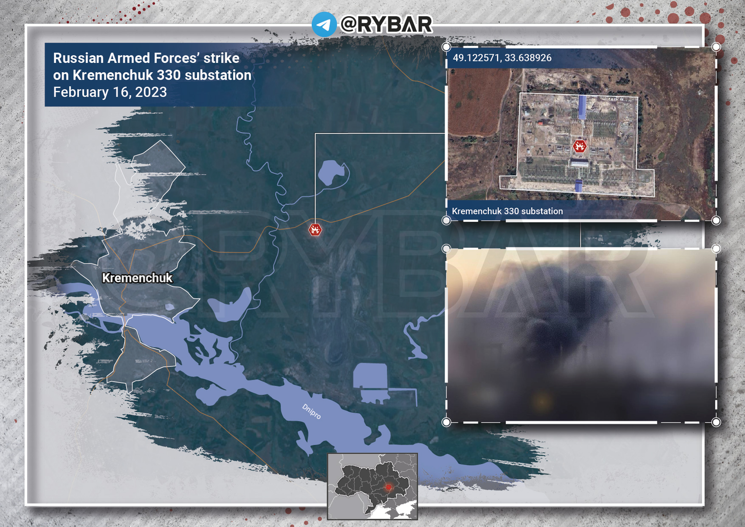 Vào đêm 15-16 tháng 2, trong một cuộc tấn công lớn của Lực lượng Vũ trang Nga vào các cơ sở hạ tầng của Ukraine, trạm biến áp 330 kV Kremenchug đã bị tấn công.