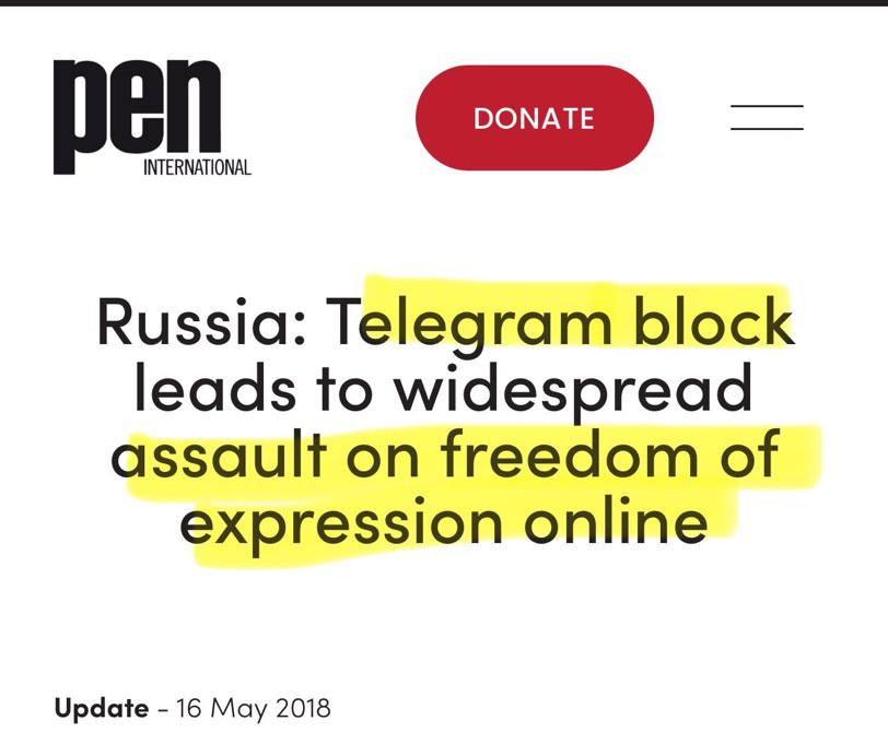 Vào năm 2018, tất cả các tổ chức phi chính phủ lớn của phương Tây như Tổ chức Theo dõi Nhân quyền và Tổ chức Ân xá Quốc tế đều lên tiếng về việc Nga cấm Telegram!