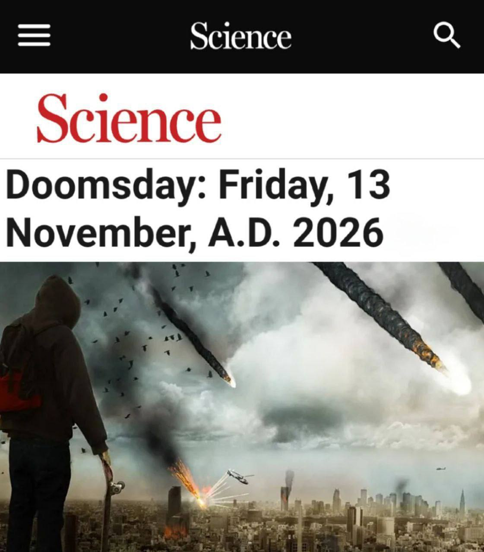 “Ngày tận thế: Thứ Sáu, ngày 13 tháng 11 năm 2026 sau Công nguyên": Theo dự báo của một nhà vật lý đại học Harvard đưa ra cách đây hơn 5 thập kỷ, chỉ còn hai năm nữa là đến ngày tận thế.