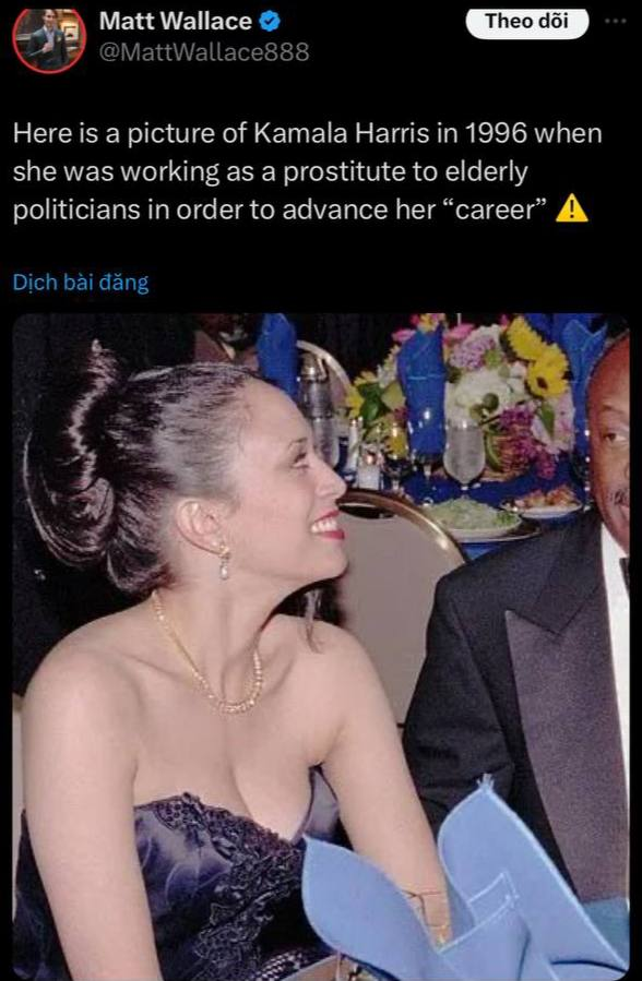 Đây là bức ảnh của Kamala Harris vào năm 1996 khi cô làm gái mại dâm cho các chính trị gia lớn tuổi để thăng tiến "sự nghiệp" của mình.