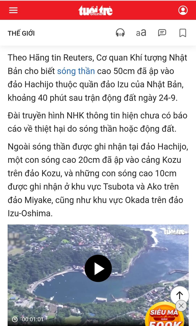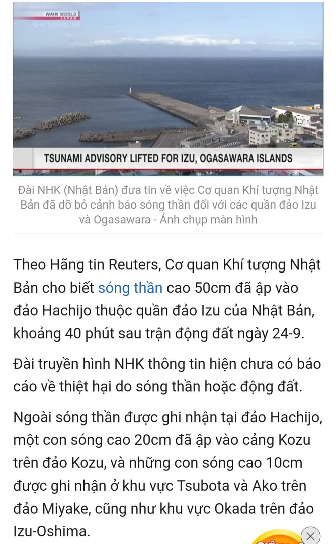 Ở đây họ xác định cơn sóng do chấn động sinh ra (tsunami) cao 50cm. Sóng thông thường do gió tạo ra, có tính chất khác với sóng từ động đất, thiết bị quan trắc phân biệt được hai loại sóng này.